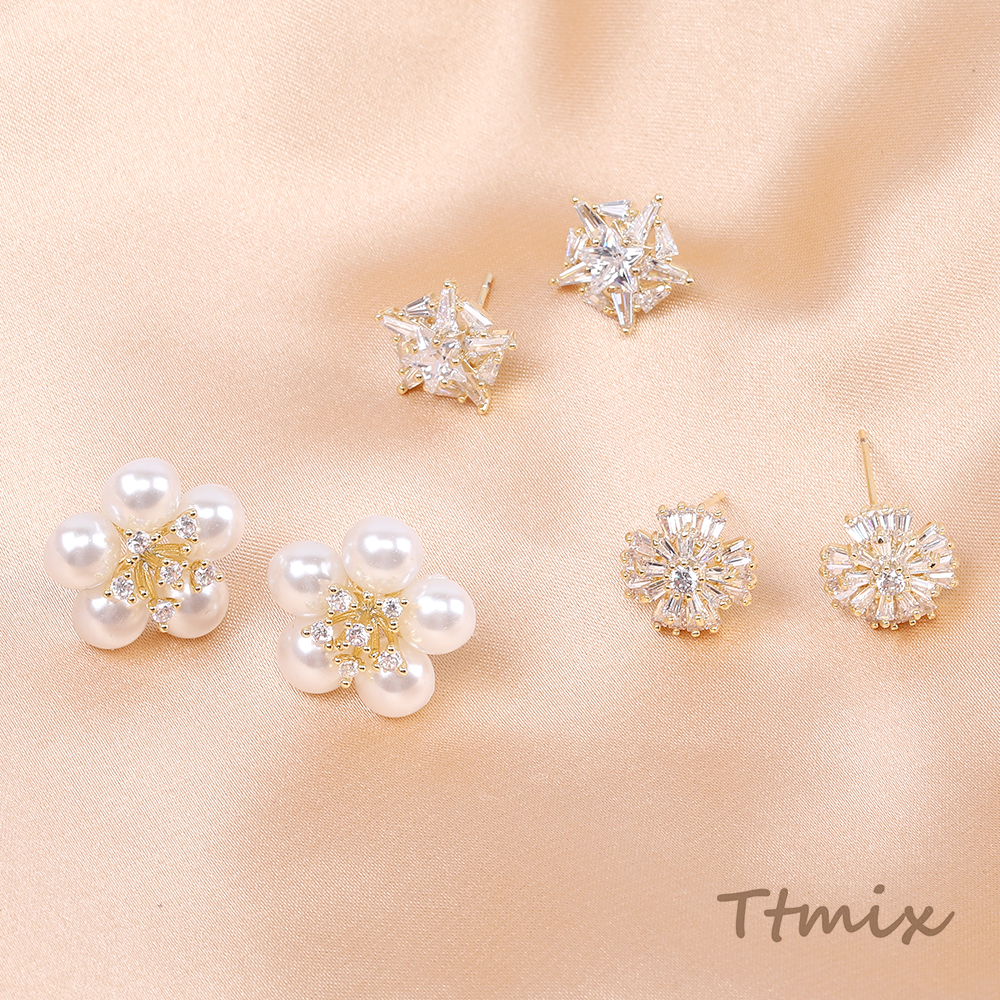デザインピアス ジルコニア付きピアス ゴールド 全5種(1ペア)