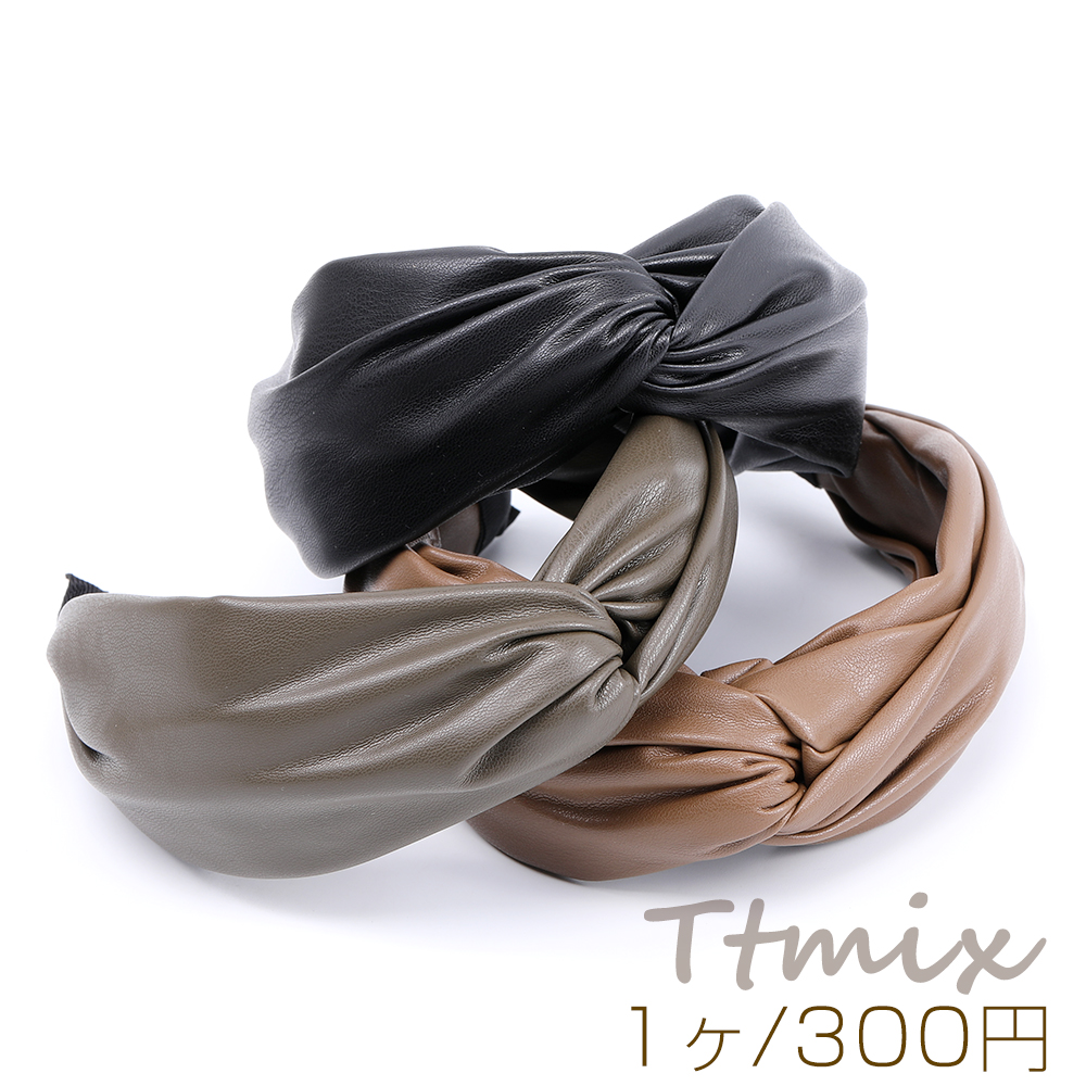 PUレザー付きカチューシャ ヘアアクセサリー 幅約35mm(1ヶ)