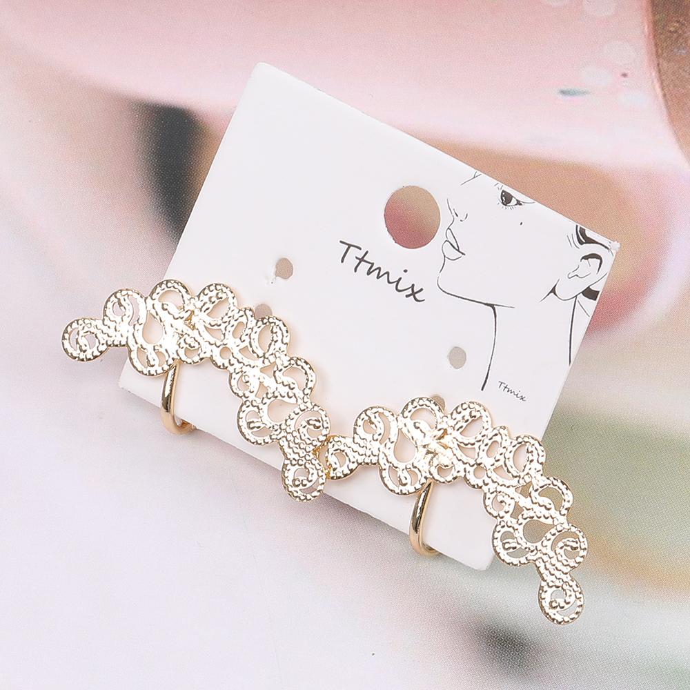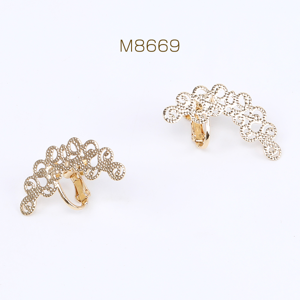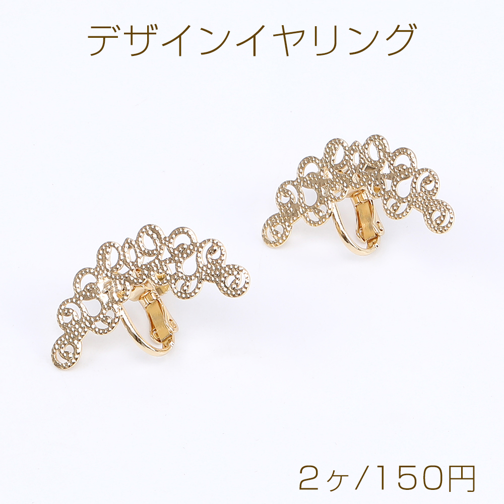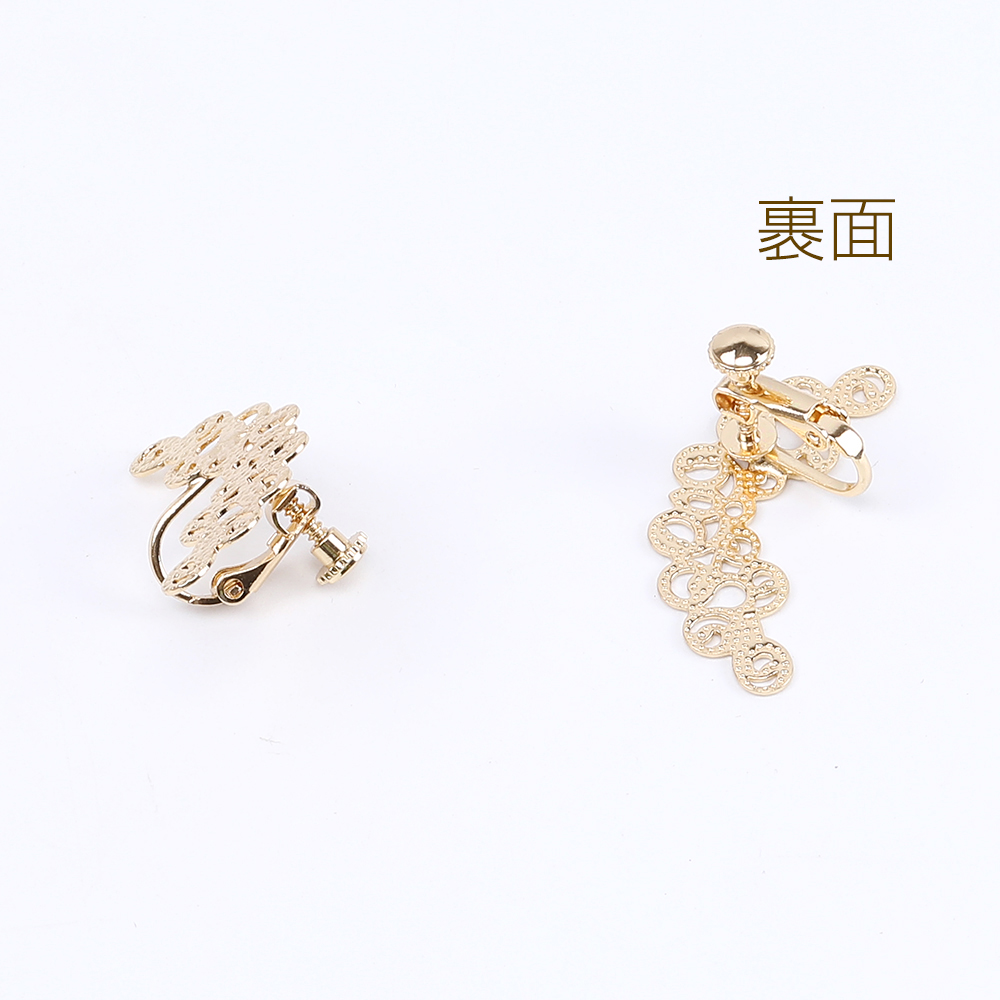 デザインイヤリング 透かしフラワー付き 13×31mm ゴールド(2ヶ)