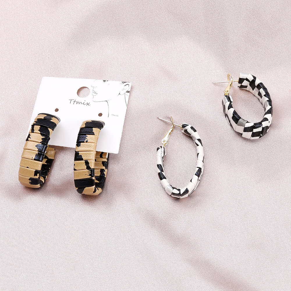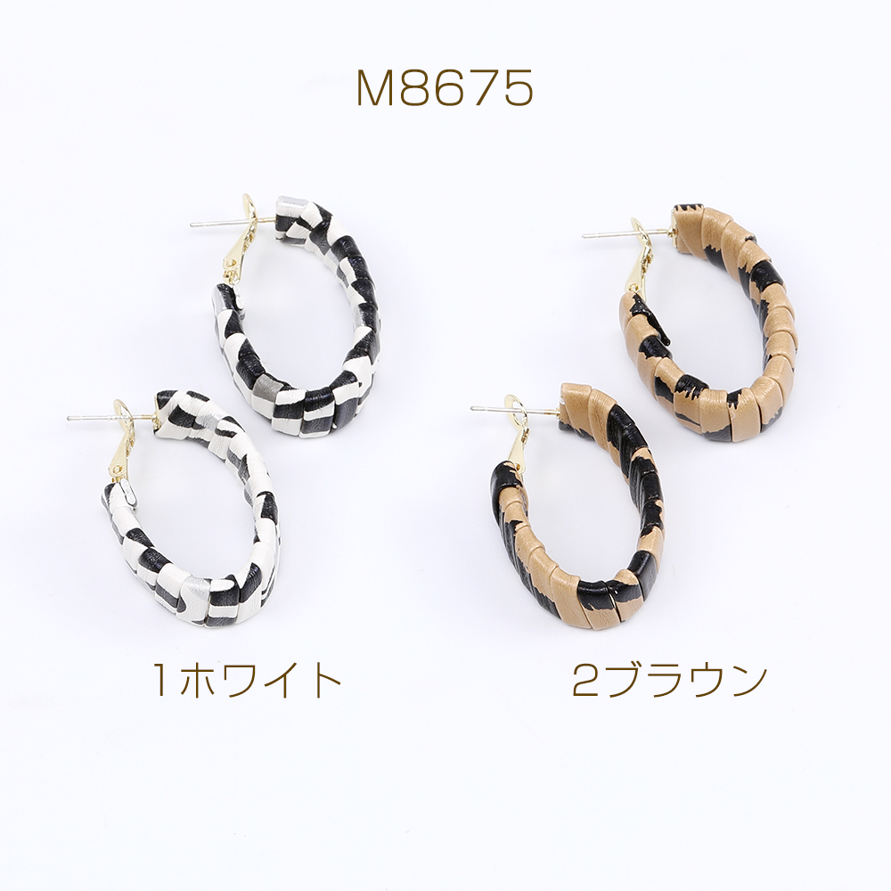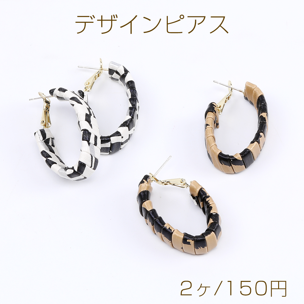 デザインピアス PUレザー付きフープピアス オーバル 9×21×36mm(2ヶ)