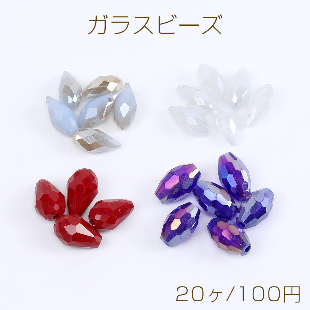 ガラスビーズ ガラスチャーム しずく型カット オーバルカット 全4種 メッキ