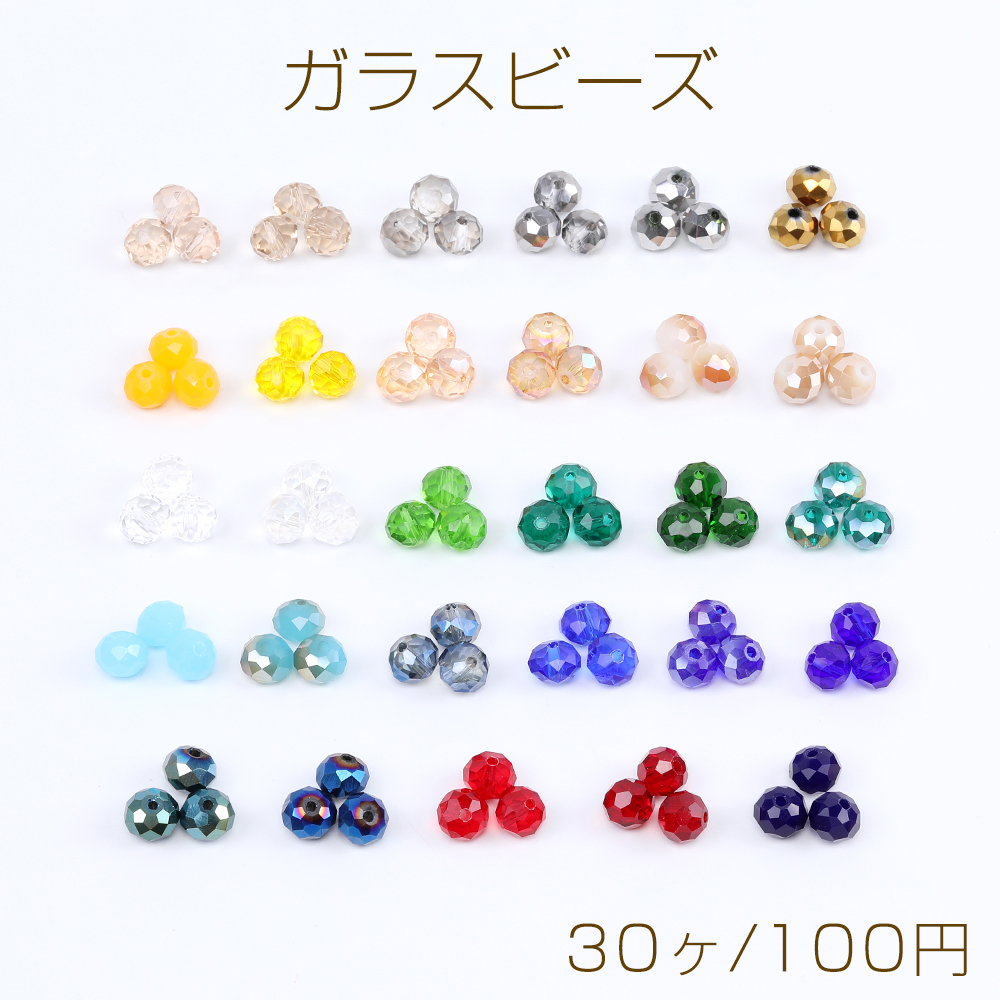 ガラスビーズ ボタンカット 6×8mm メッキ
