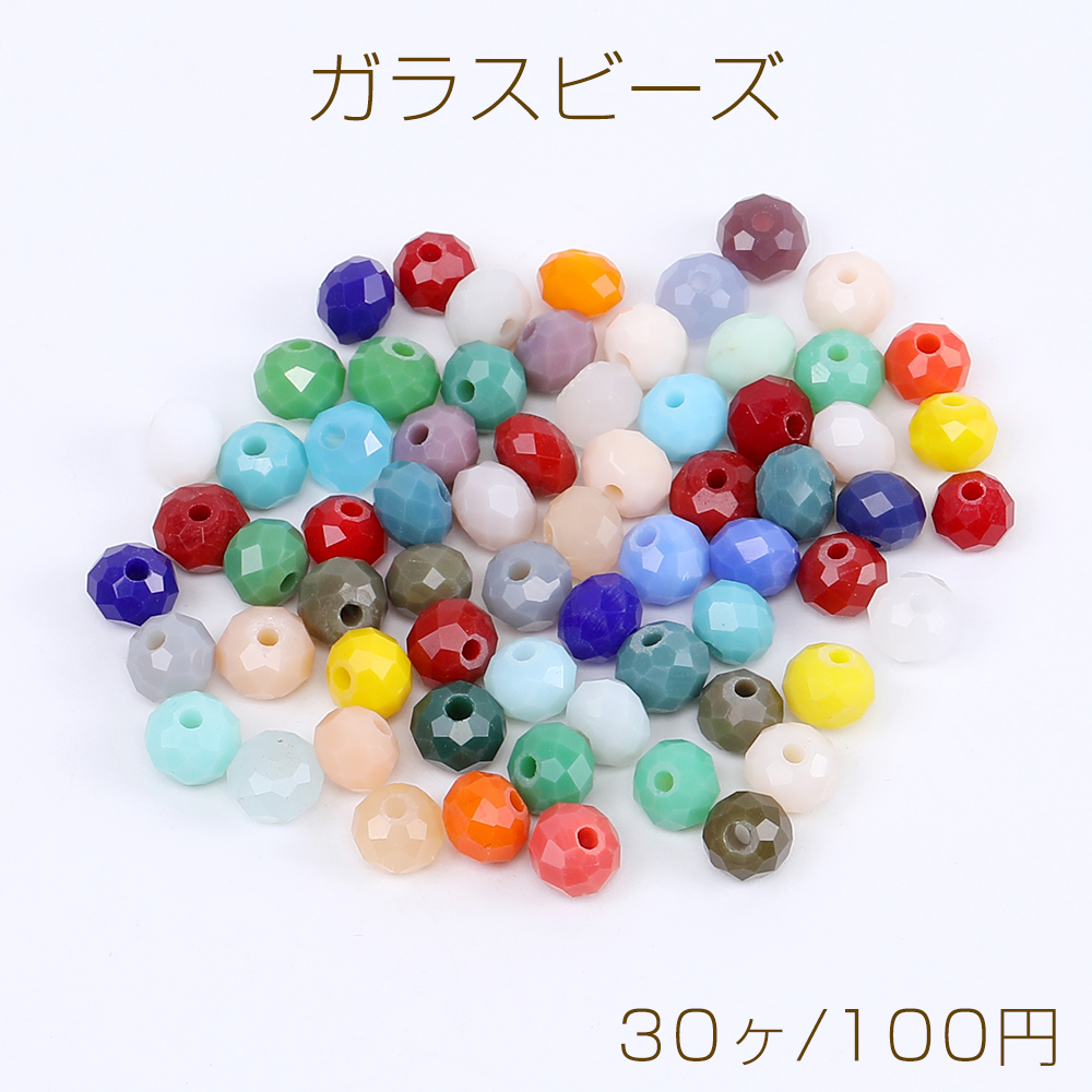 ガラスビーズ ボタンカット 4×6mm ミックスカラー(30ヶ)