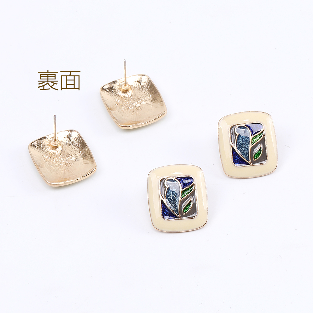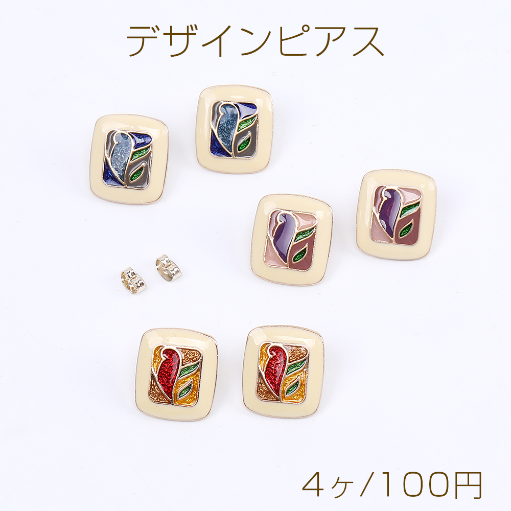 デザインピアス エポ付きピアス 長方形型 17×20mm ゴールド(4ヶ)