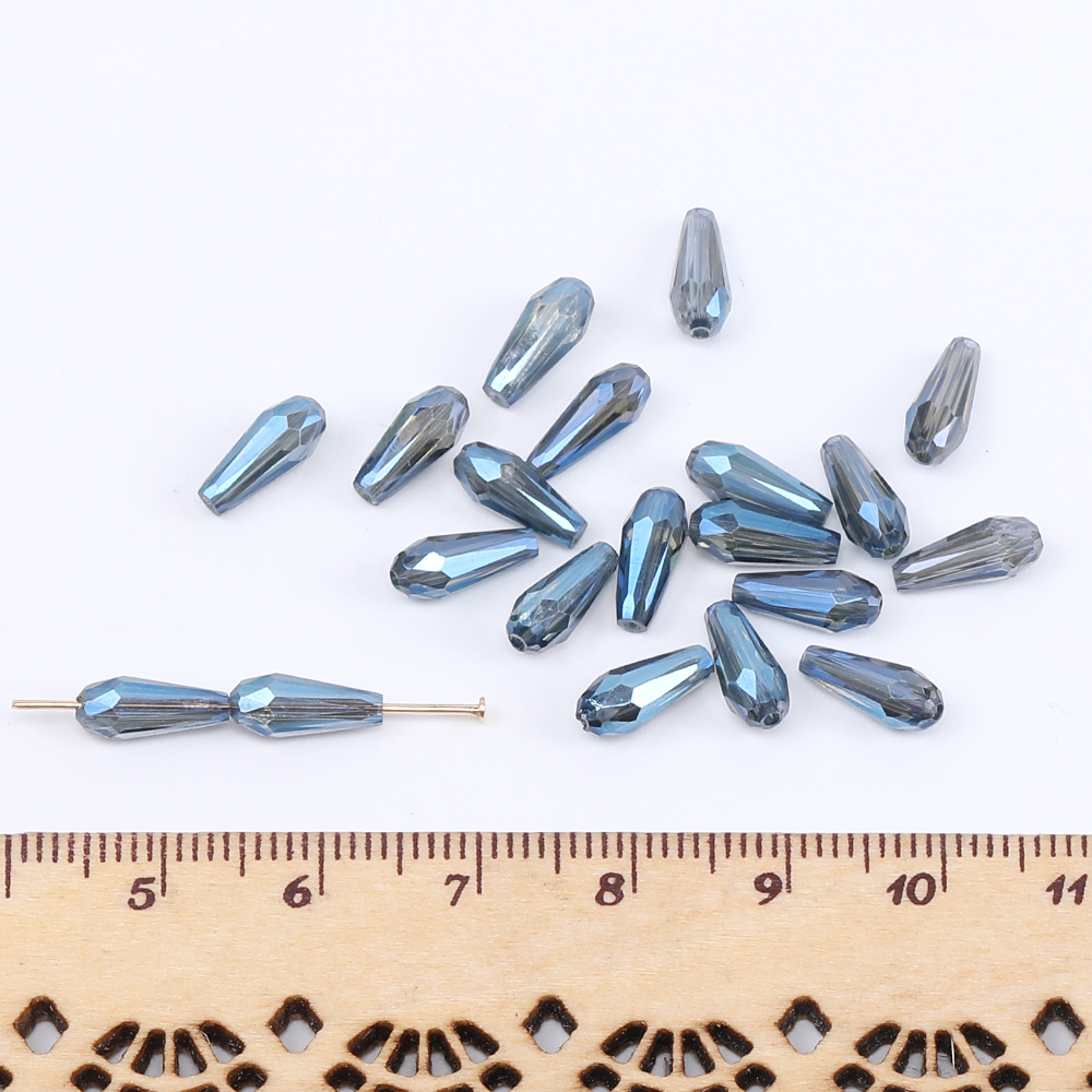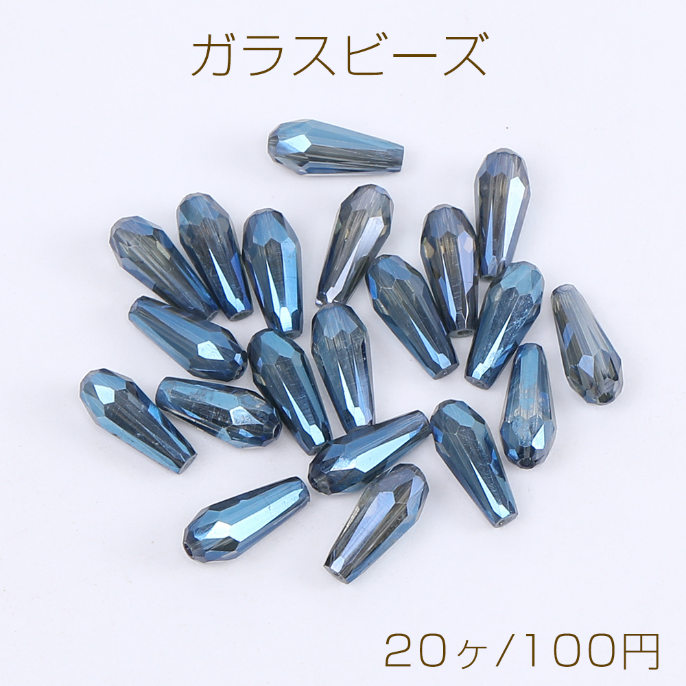 ガラスビーズ しずく型カット 4×10mm メッキ ダークブルー(20ヶ)
