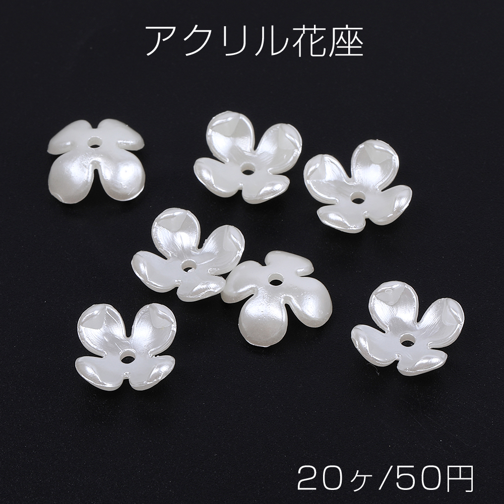 アクリルパーツ アクリル花座 フラワー 四弁花 穴あり 10mm ホワイト(20ヶ)