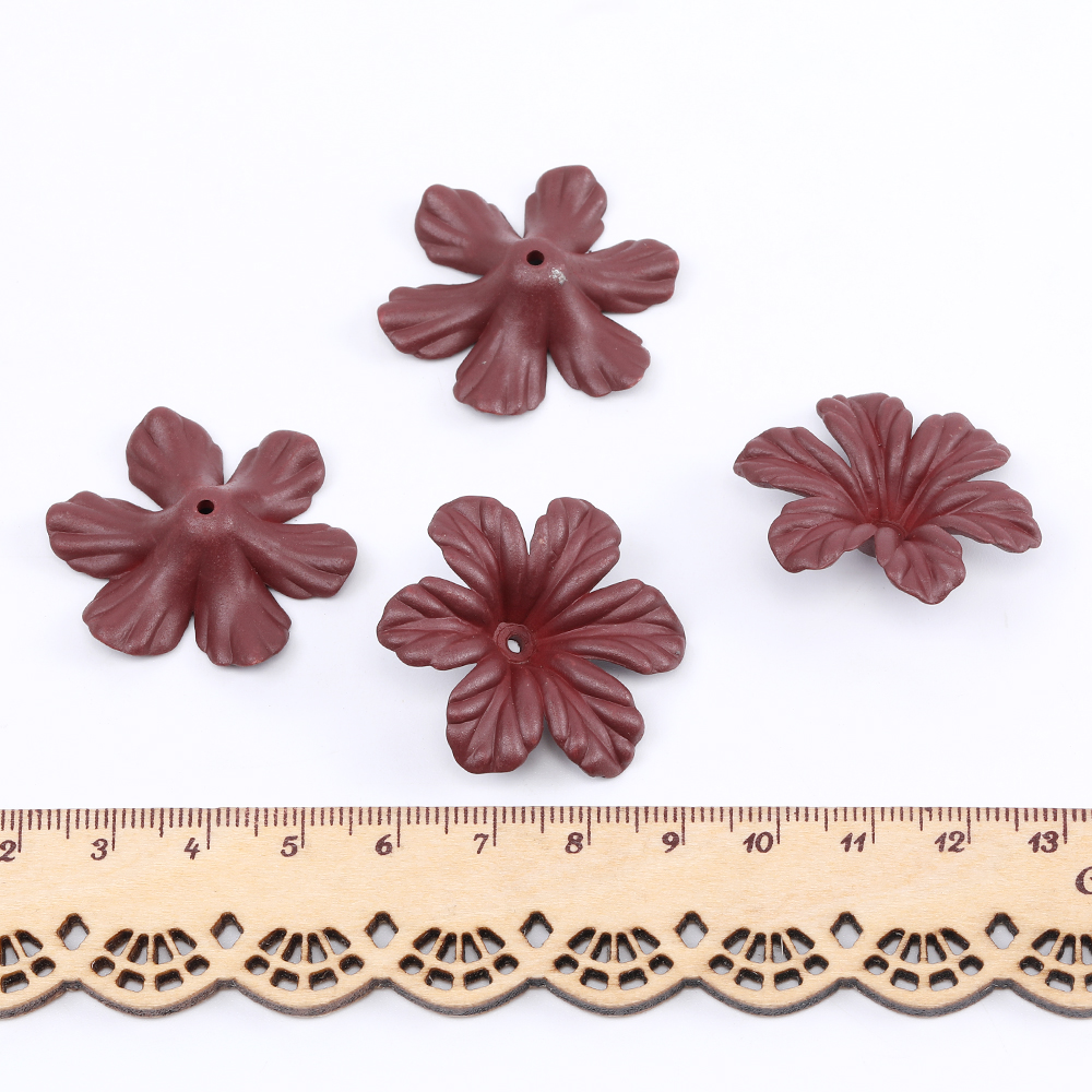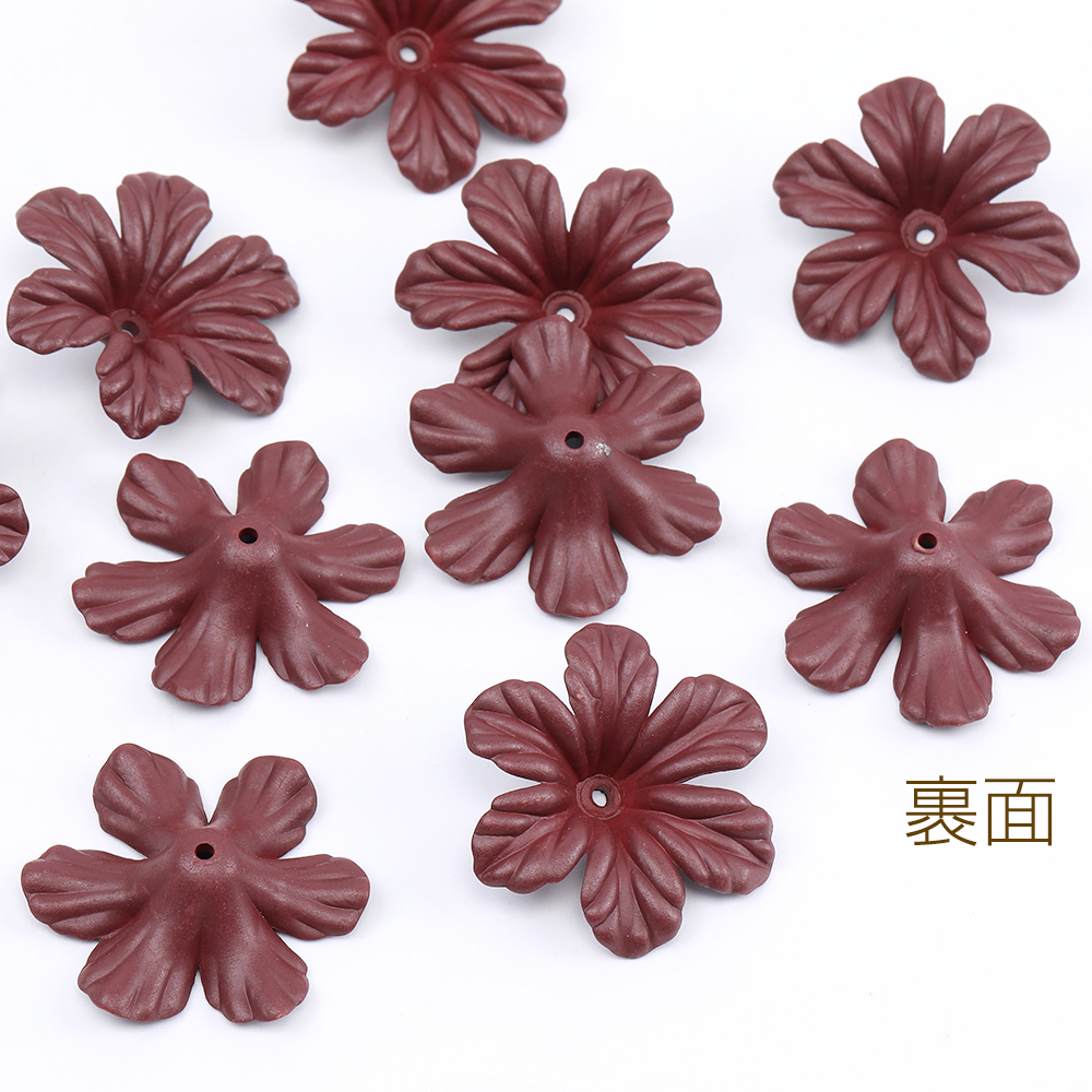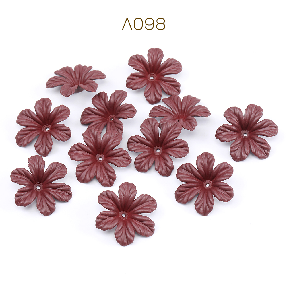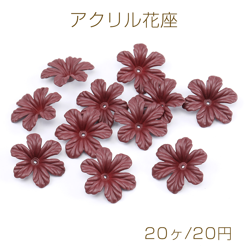 アクリルパーツ アクリル花座 フラワー 六弁花 穴あり 30mm ワインレッド(20ヶ)