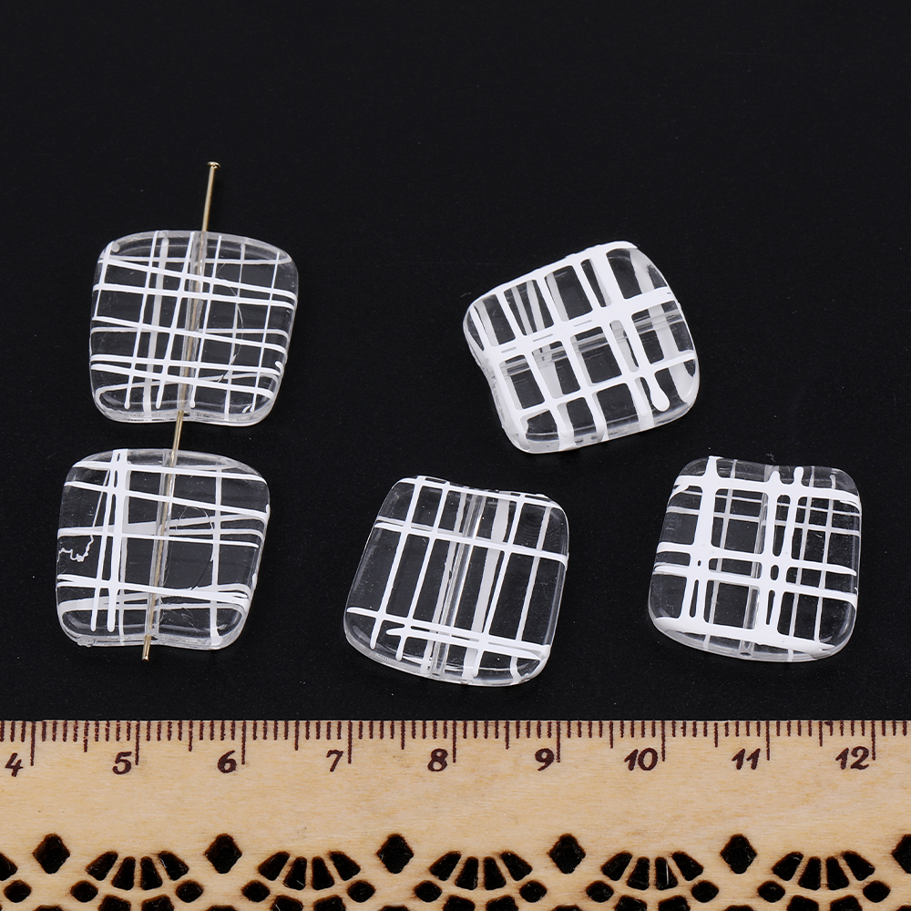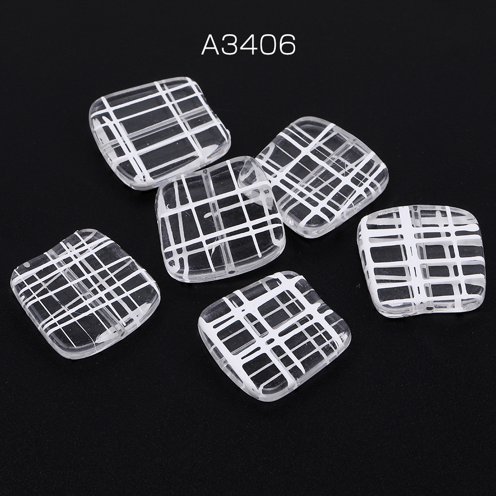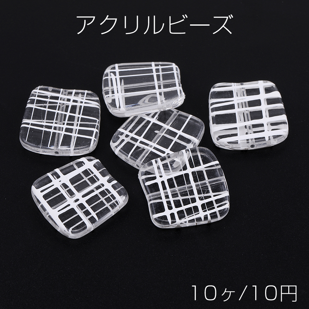 アクリルビーズ 不規則スクエア型 20×21mm クリア/ホワイト(10ヶ)