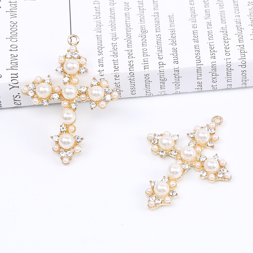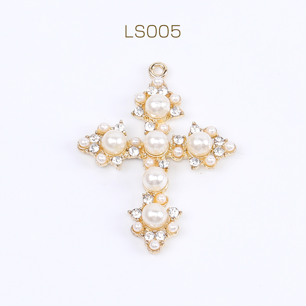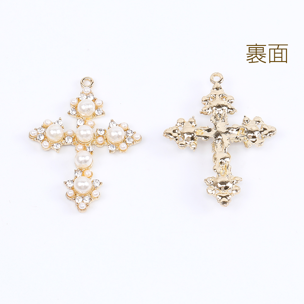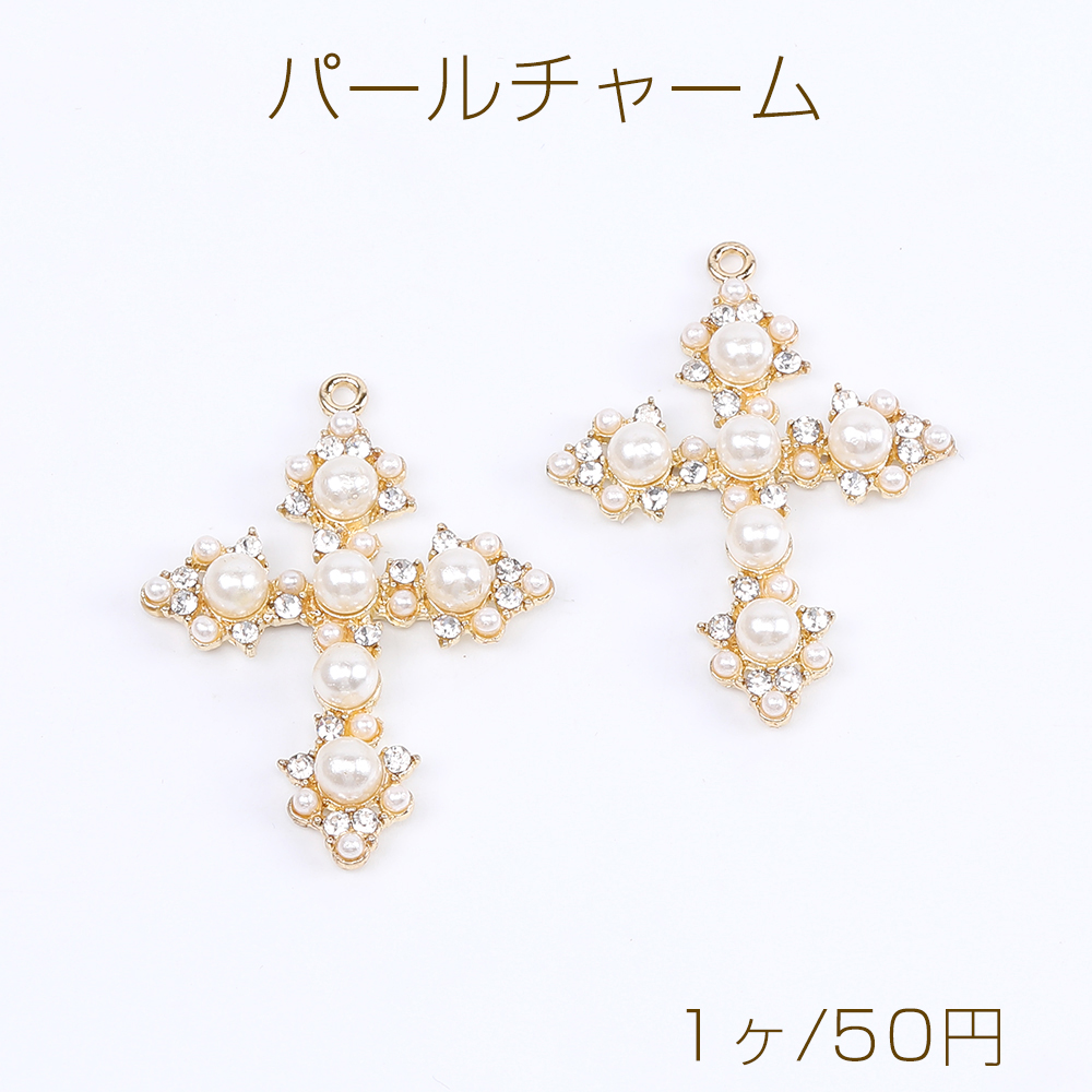 パールチャーム ラインストーン付き 十字架 1カン 31×42mm ゴールド(1ヶ)