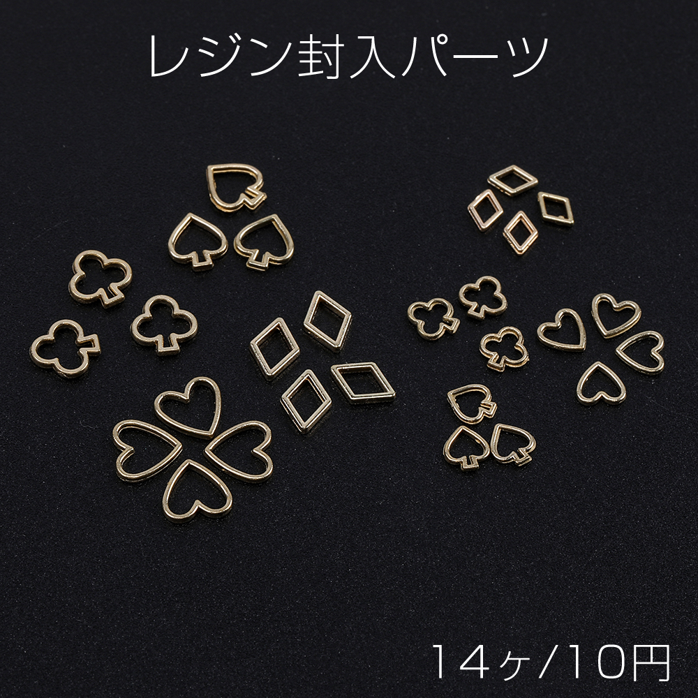 レジン封入パーツ ネイルパーツ トランプモチーフ ミックス ゴールド(14ヶ)