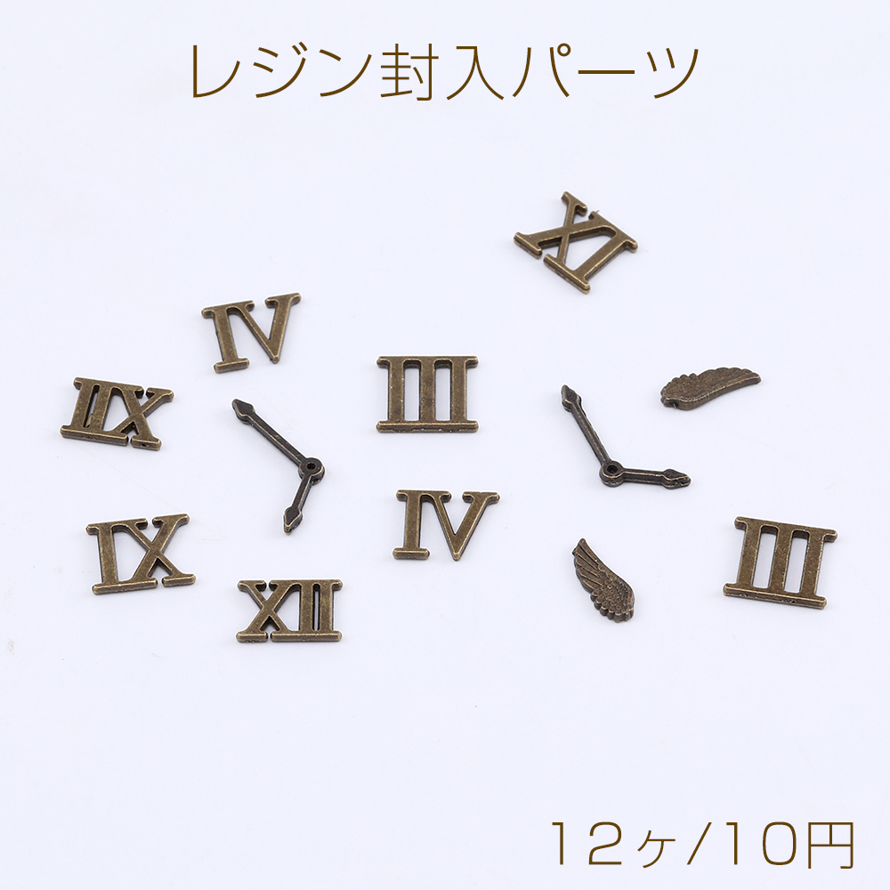 レジン封入パーツ 時計針A ミックス 真鍮古美(12ヶ)