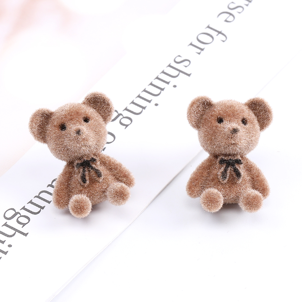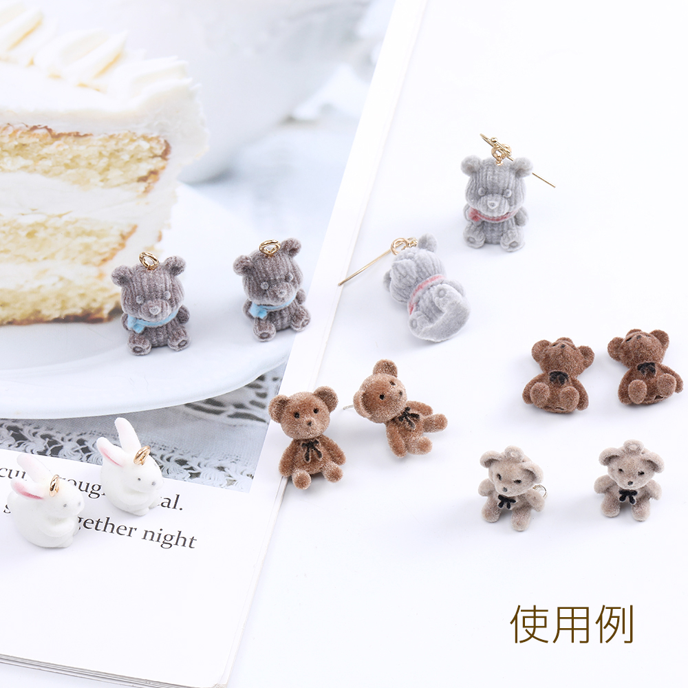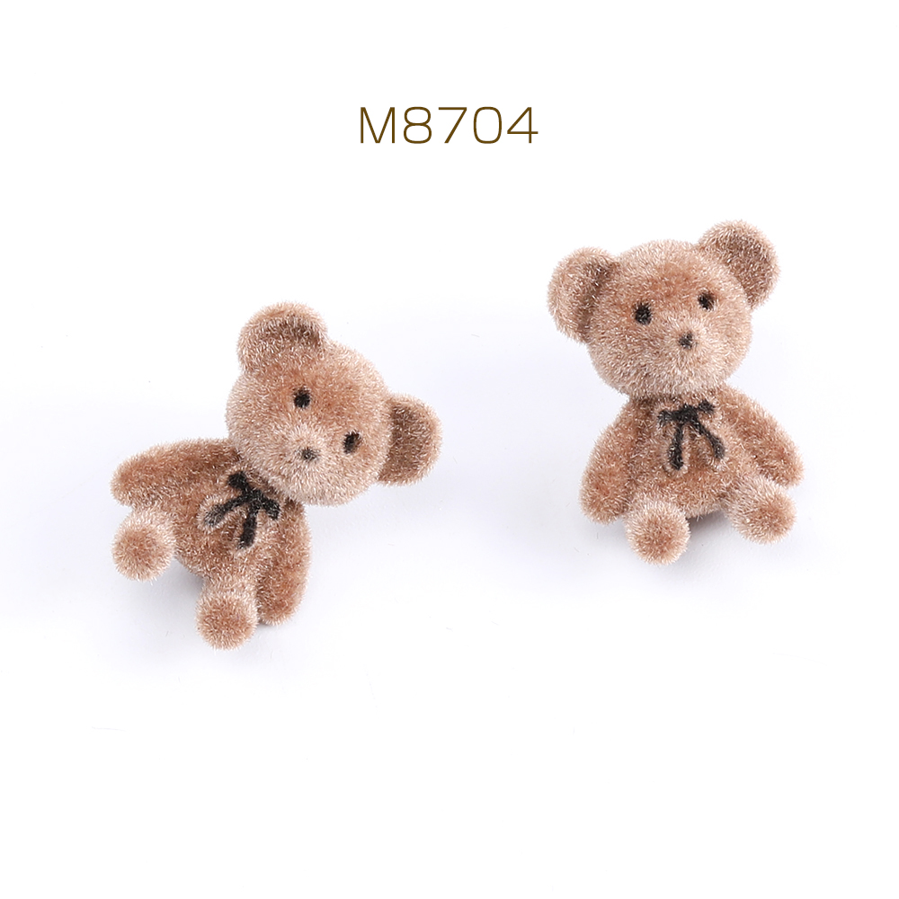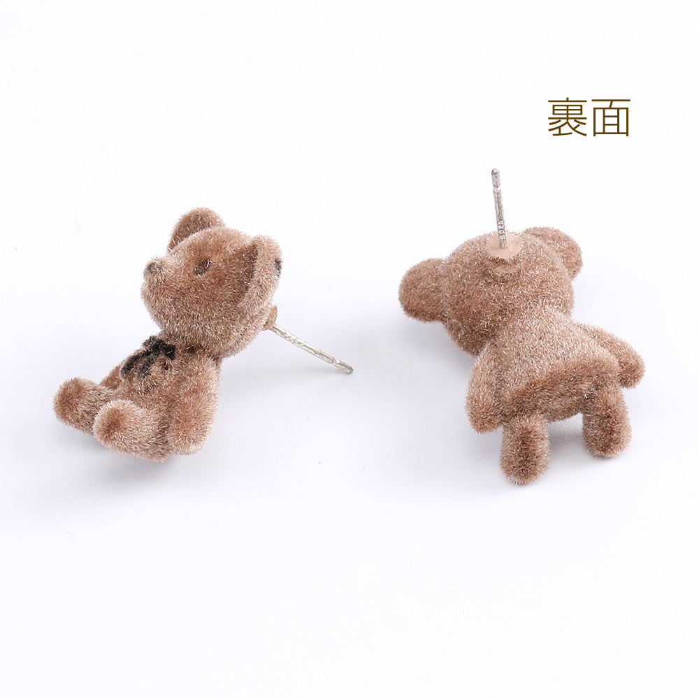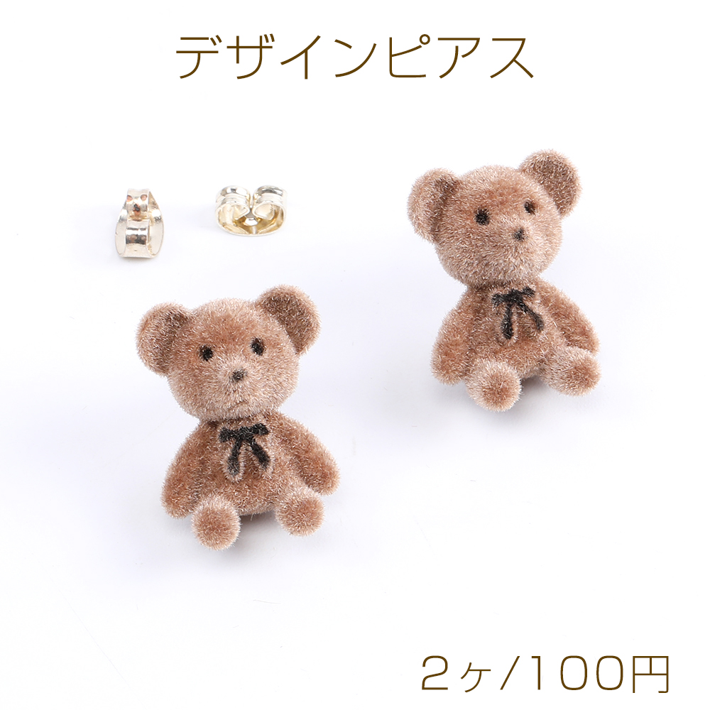 デザインピアス フロッキー付きピアス クマピアス 15×20mm ブラウン(2ヶ)