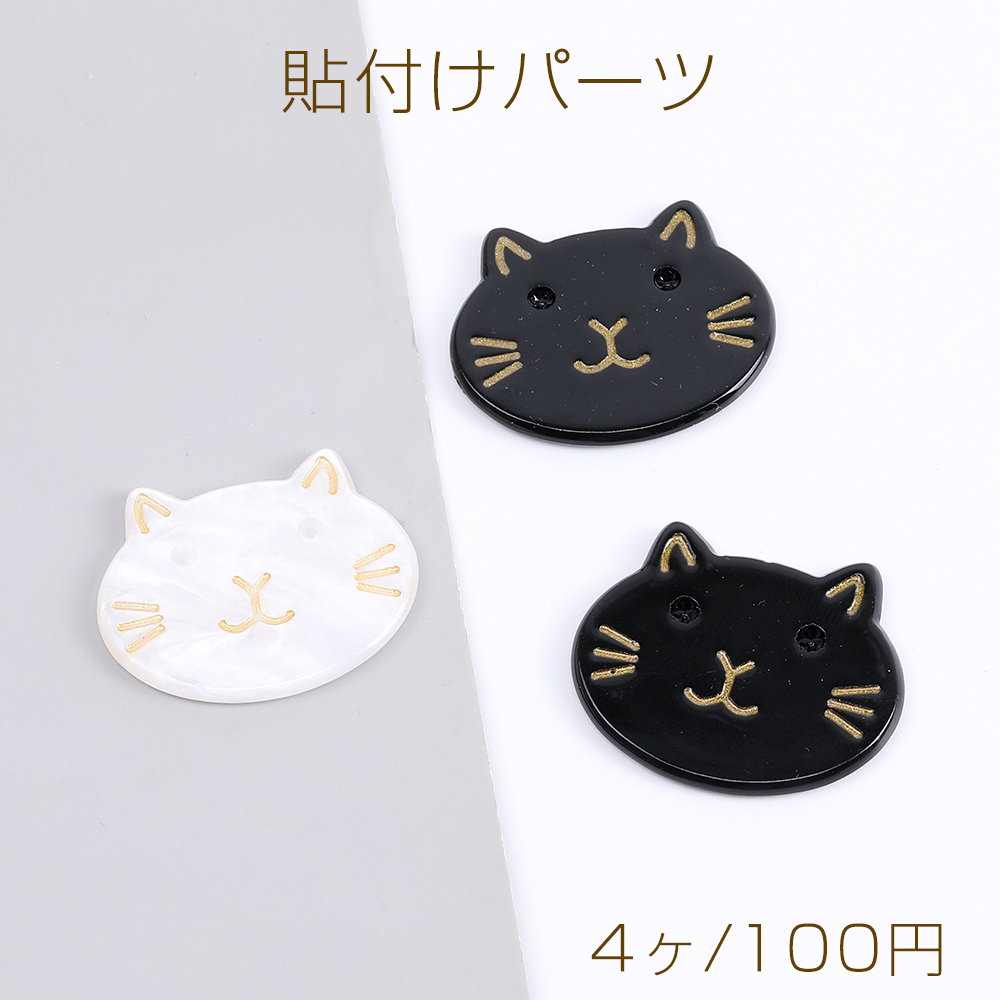 貼付けパーツ アセチ樹脂貼付けパーツ アセチ樹脂カボション 猫 24×29mm(4ヶ)