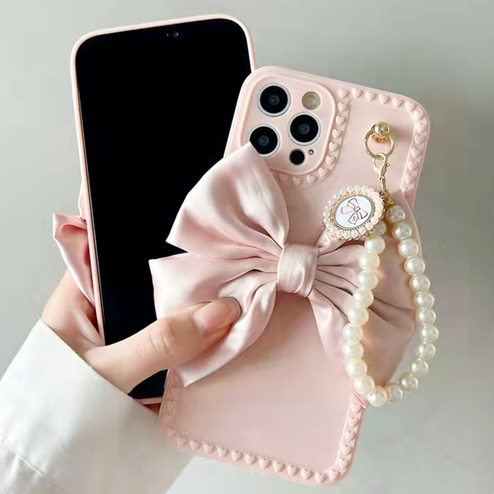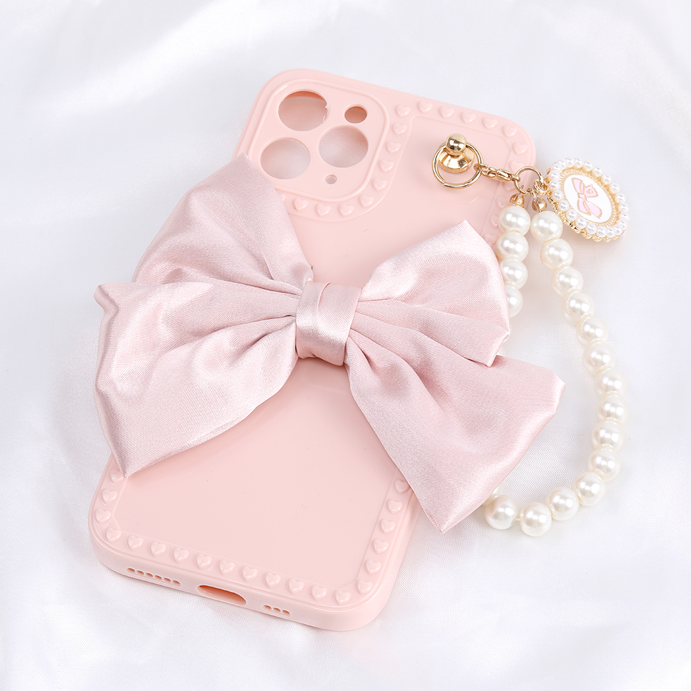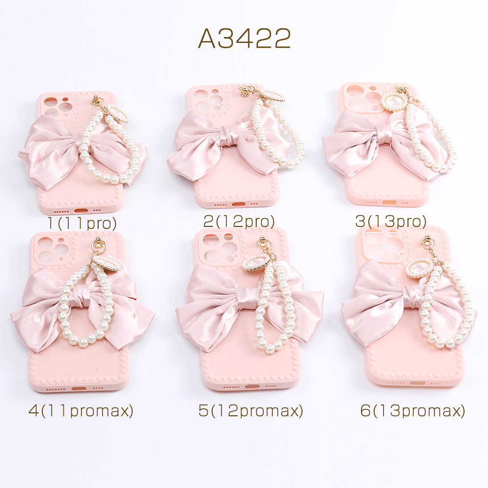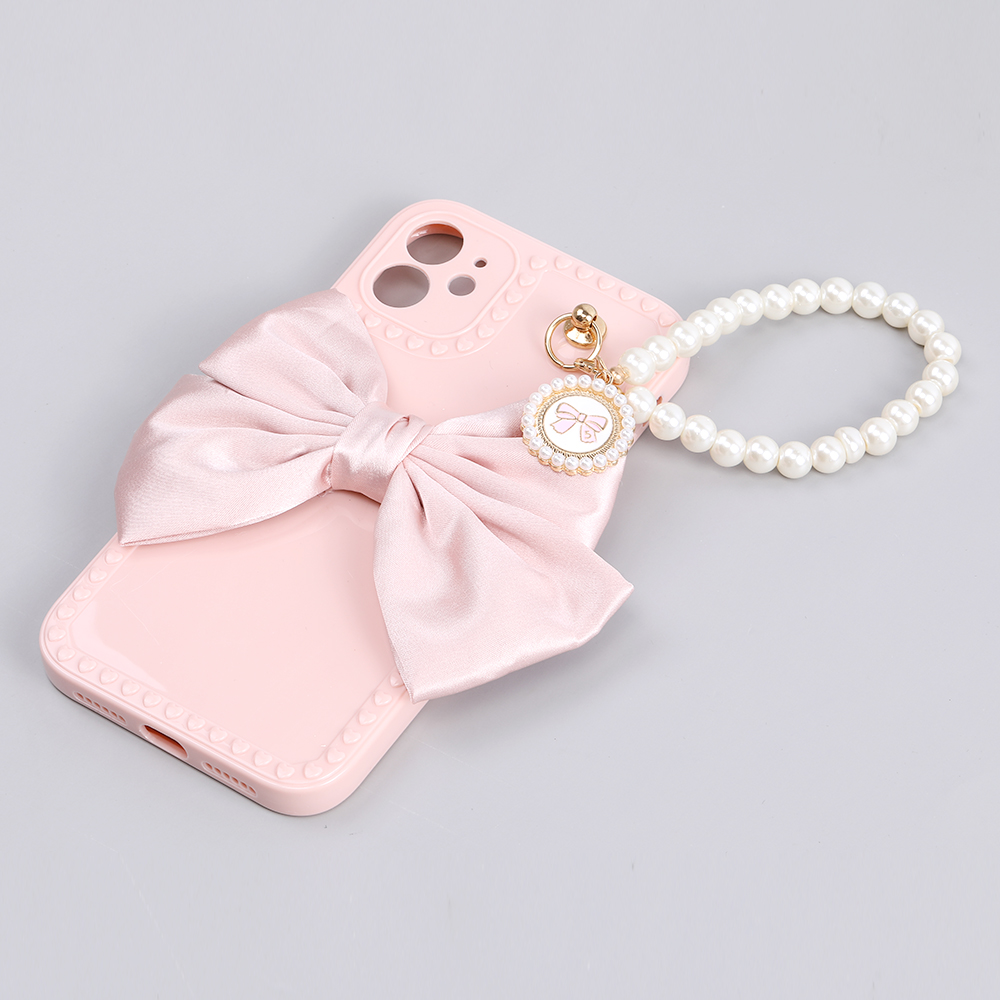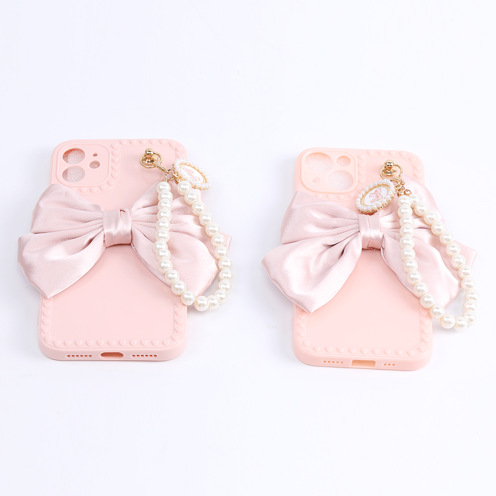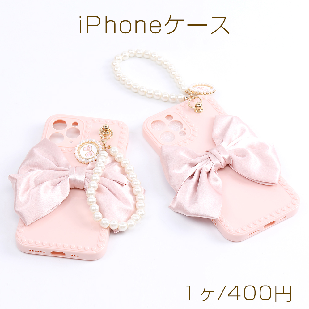 リボン&パールチェーン付きiPhoneケース ピンク(1ヶ)