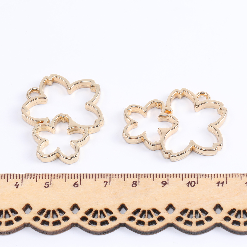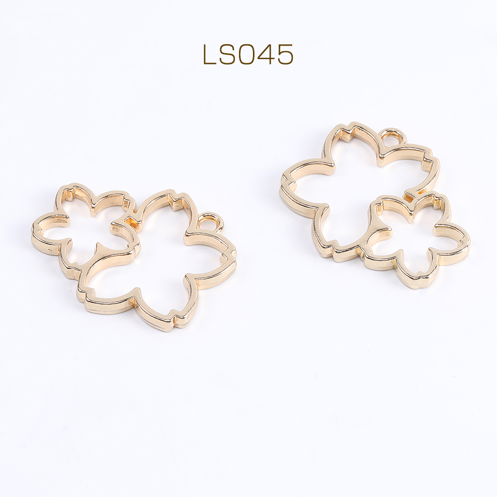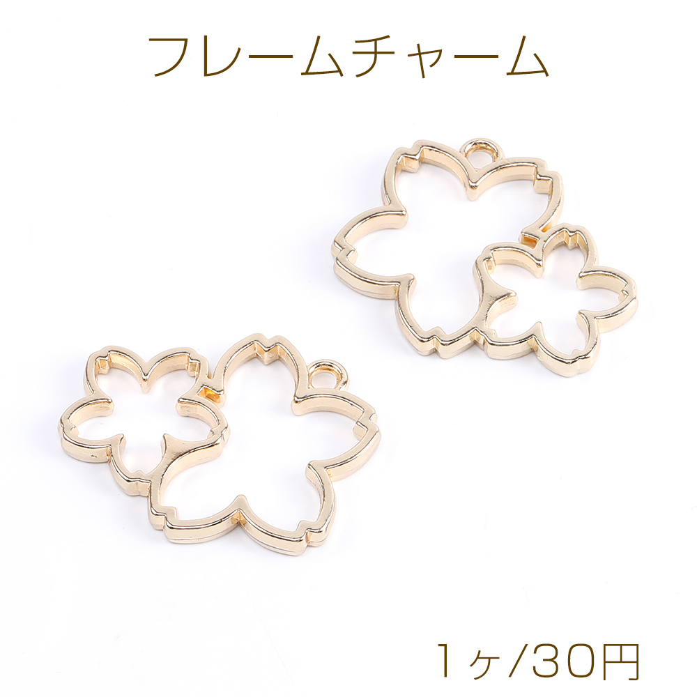 レジンフレームチャーム 2連桜 カン付き 30×36mm ゴールド(1ヶ)