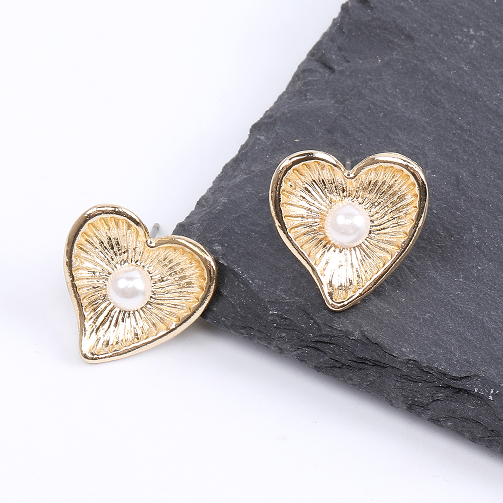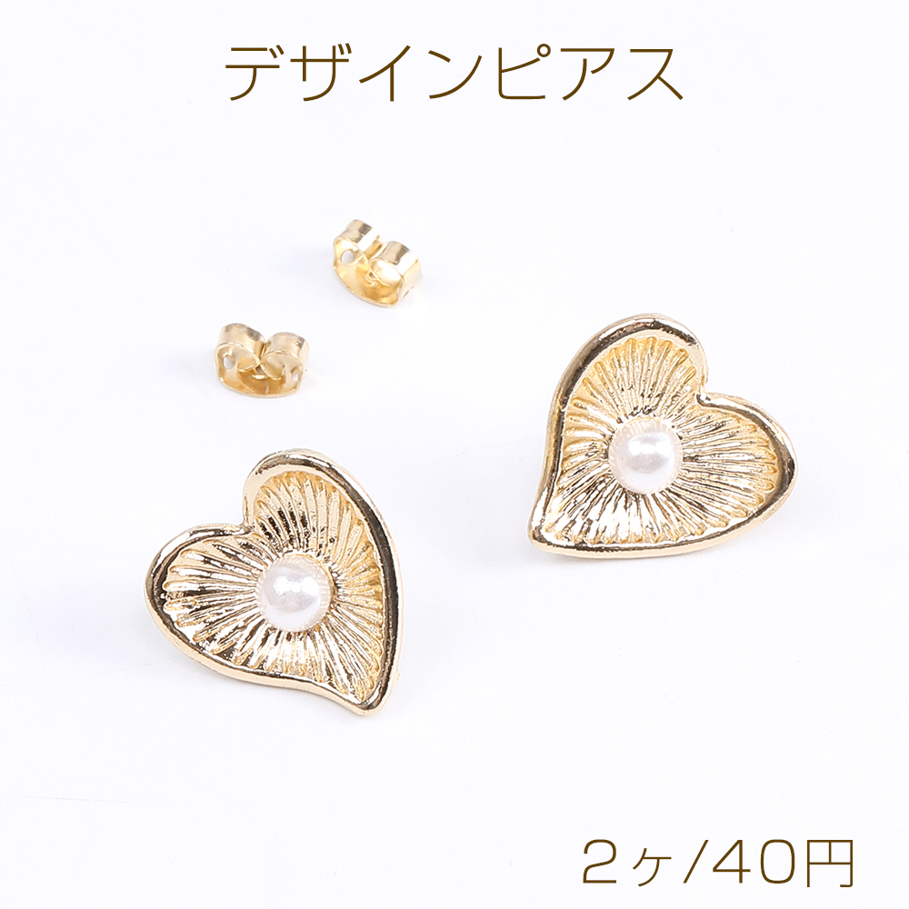 デザインピアス パール付きピアス ハート型ピアス 17×17mm ゴールド(2ヶ)
