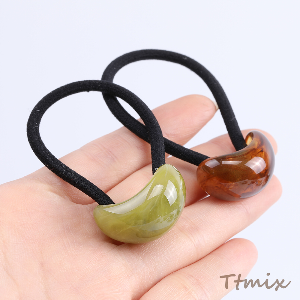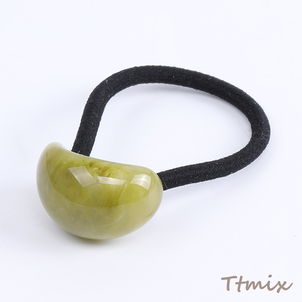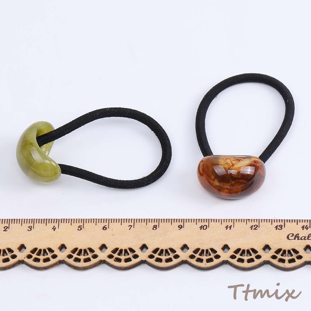 樹脂付きヘアゴム ヘアアクセサリー 28×63mm グリーン&琥珀色(2個セット)