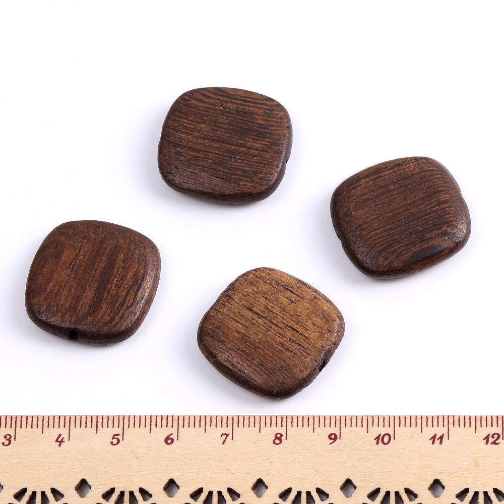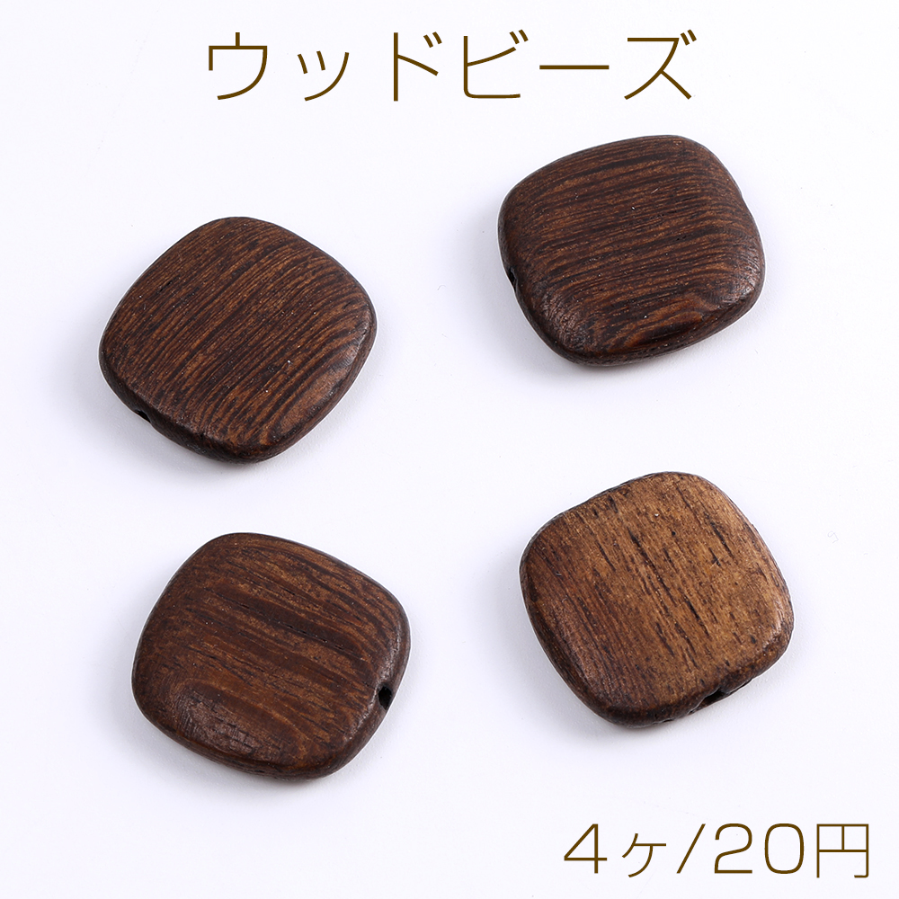 ウッドビーズ スクエア型 25×25mm ブラウン(4ヶ)