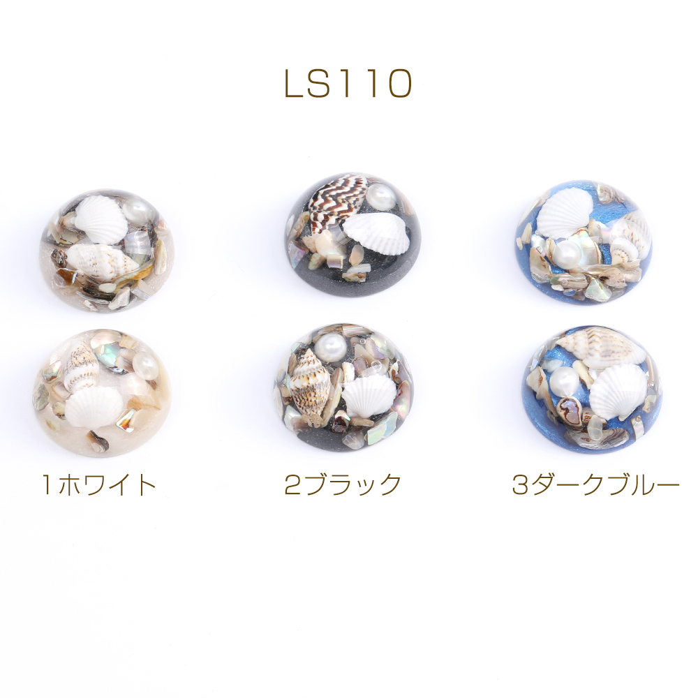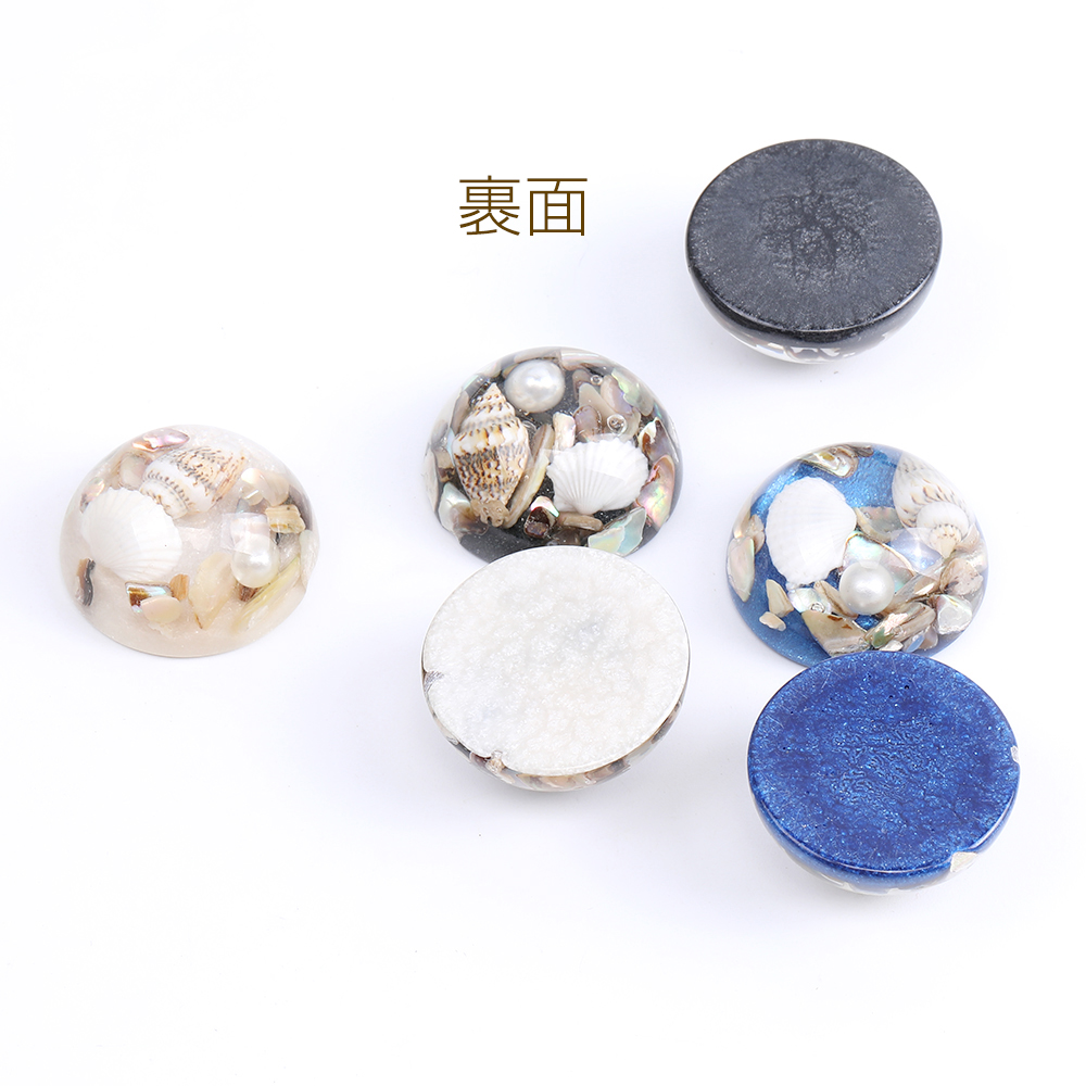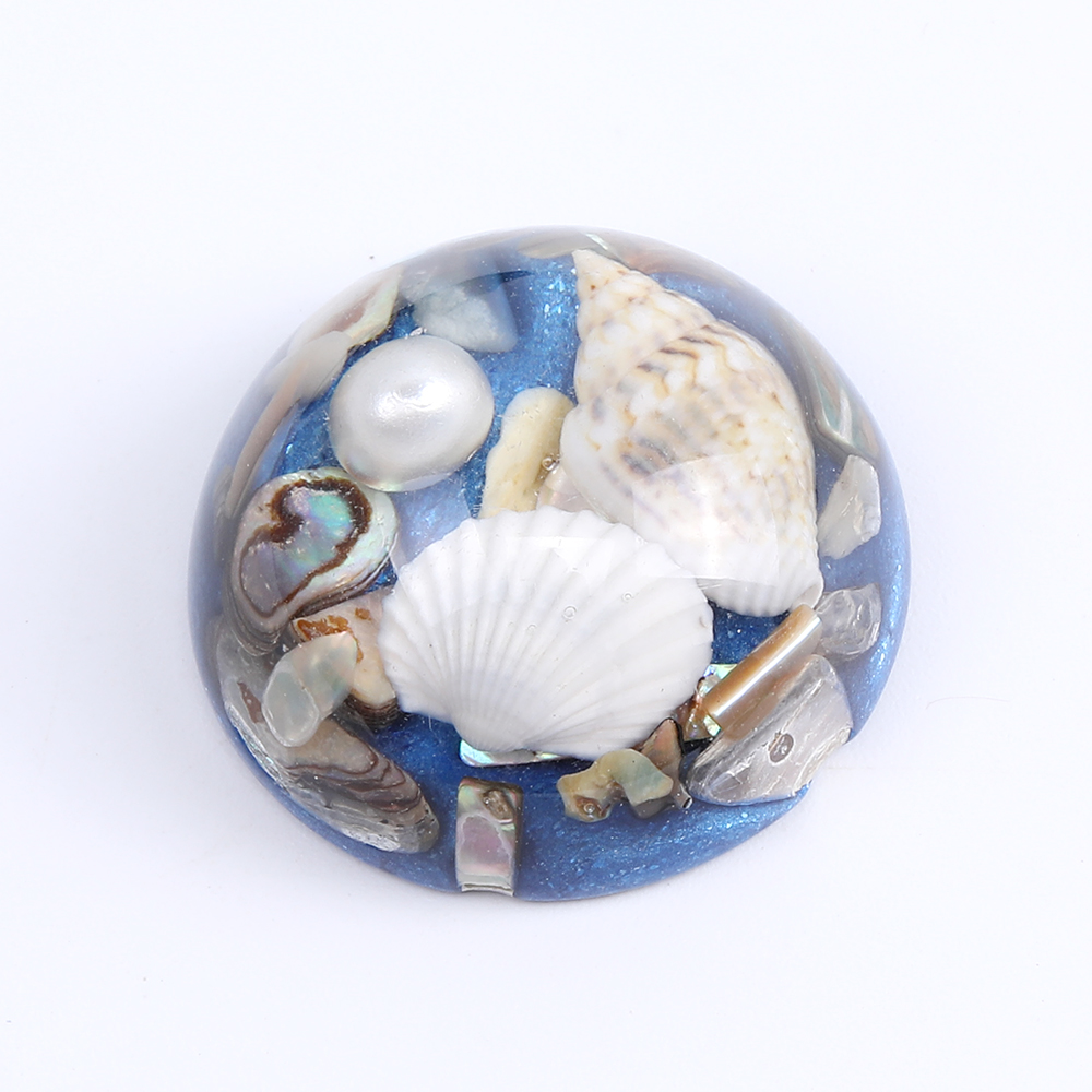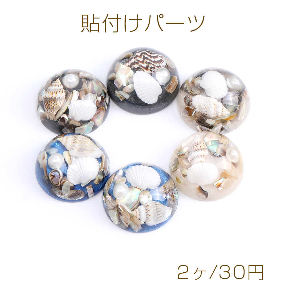 貼付けパーツ 樹脂貼付けパーツ 樹脂カボション 半円 27mm ヒトデと巻貝とパール入り(2ヶ)