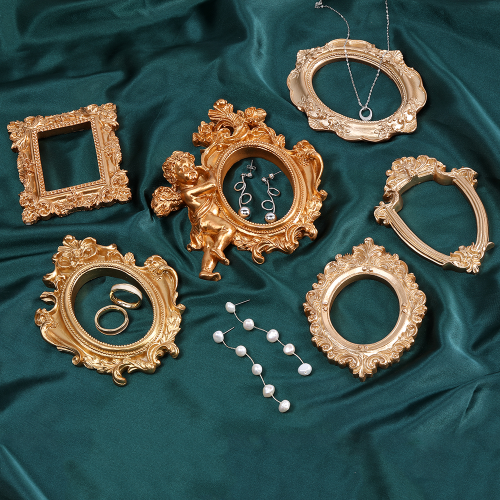 撮影用フレーム アクセサリー撮影小道具 アクセサリー背景 アンティーク撮影フレーム ゴールド
