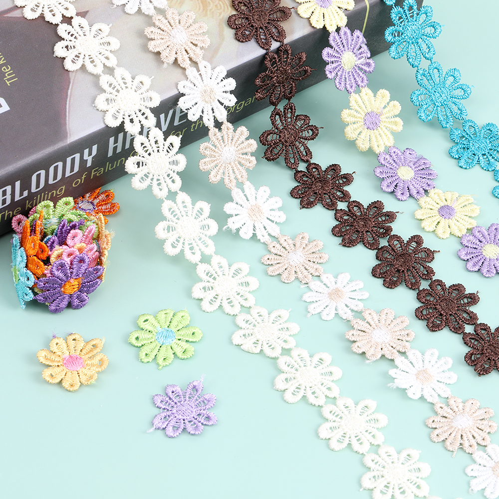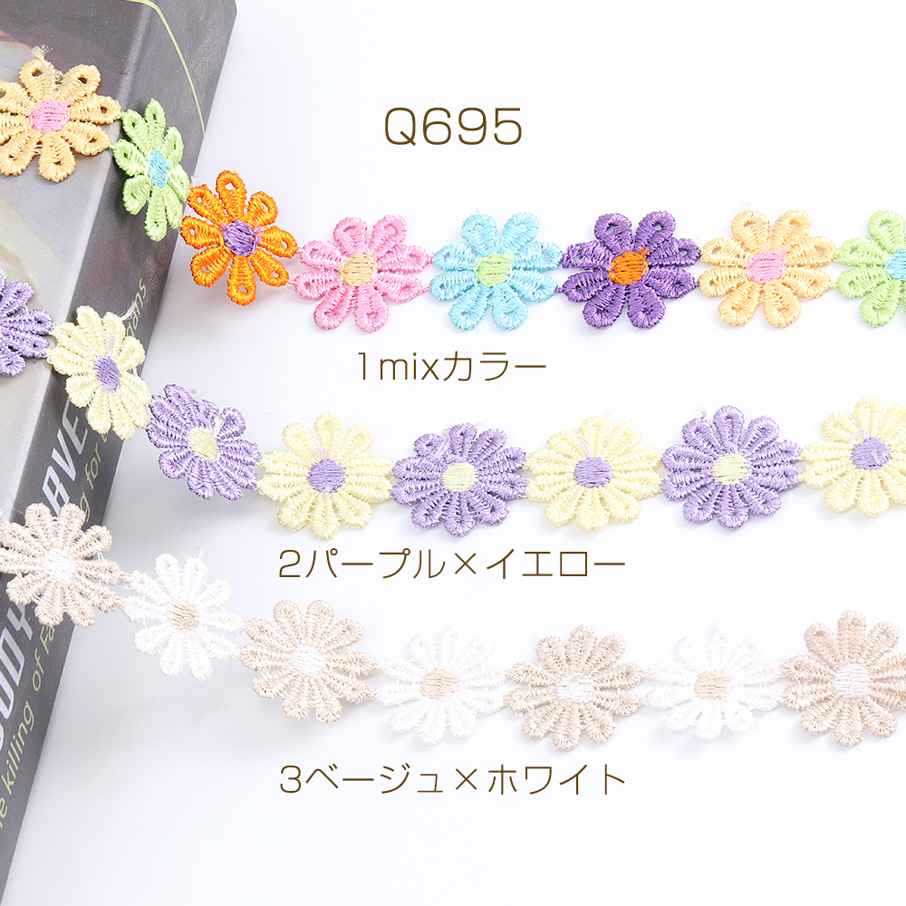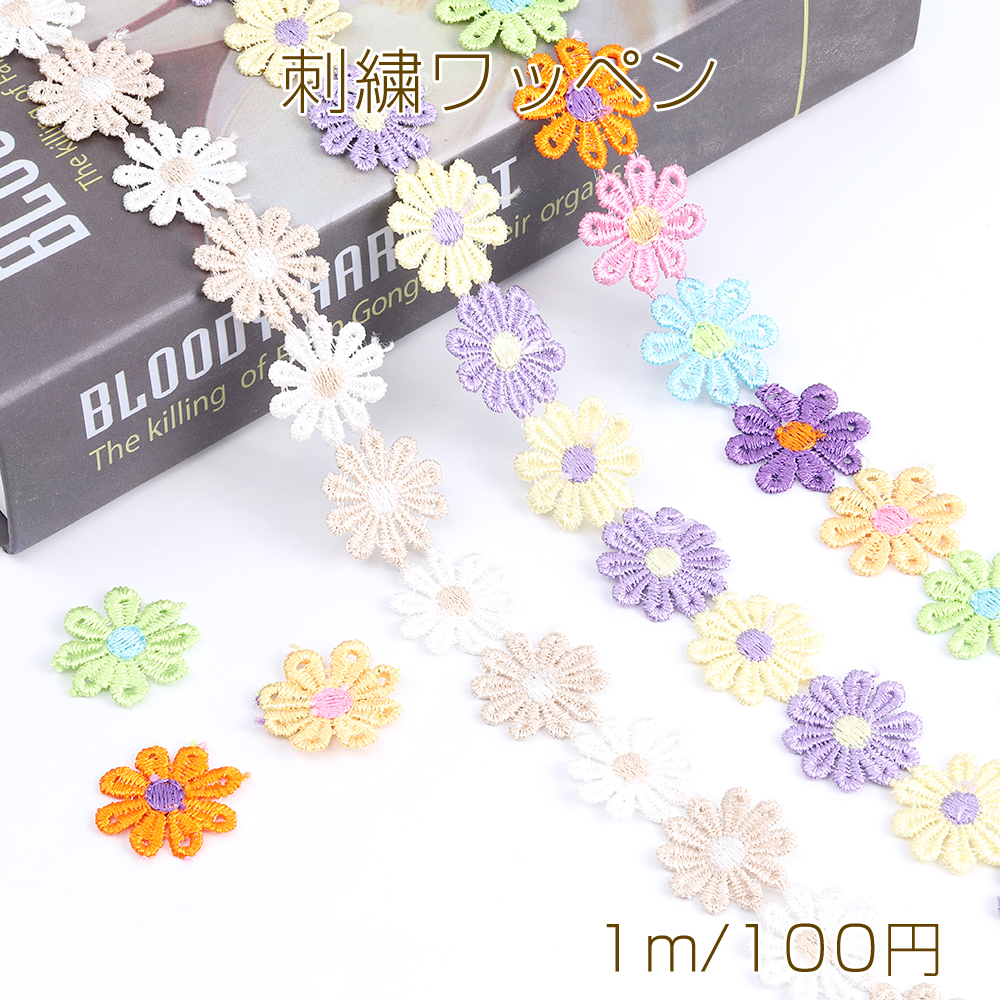 フラワー刺繍リボンテープ 花 服飾資材 ラッピングリボン 25mm 1m(約38ヶ)