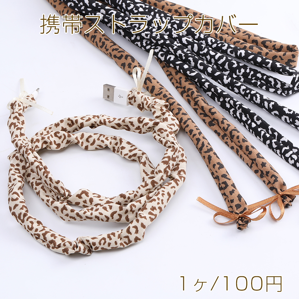 携帯ストラップカバー ヒョウ柄 リボン紐(1ヶ)