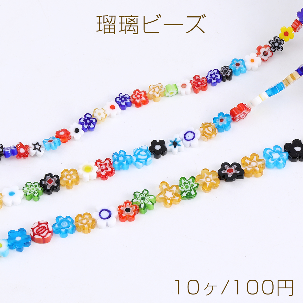 瑠璃ビーズ フラワー 3サイズ(10ヶ)