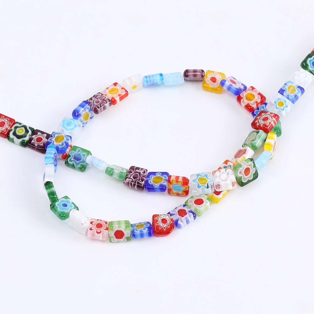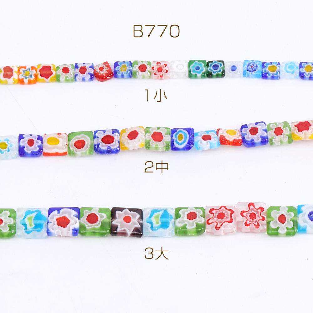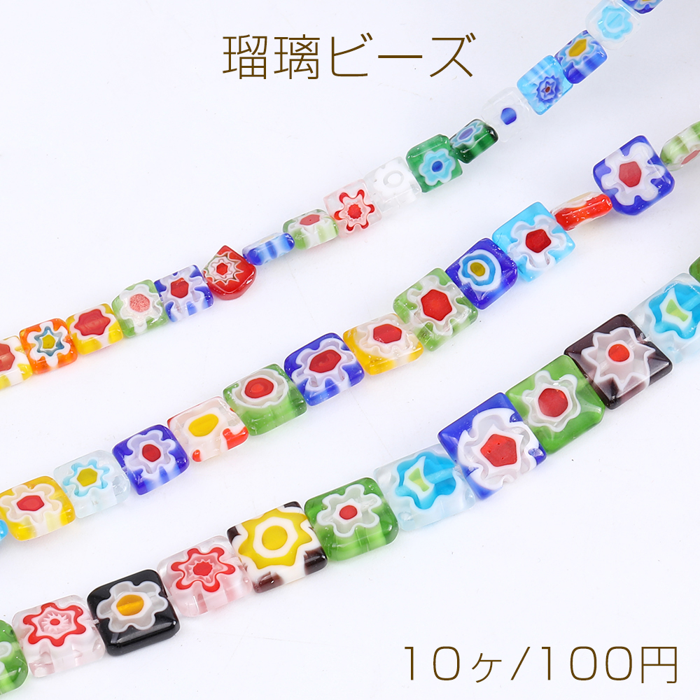 瑠璃ビーズ スクエア型 フラワー柄 3サイズ(10ヶ)