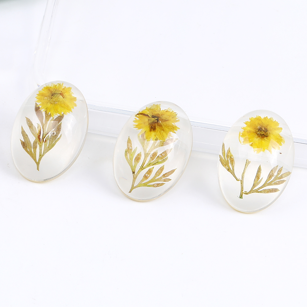 貼付けパーツ 樹脂貼付けパーツ 樹脂カボション オーバル 17×25mm ドライフラワー入り クリア(4ヶ)