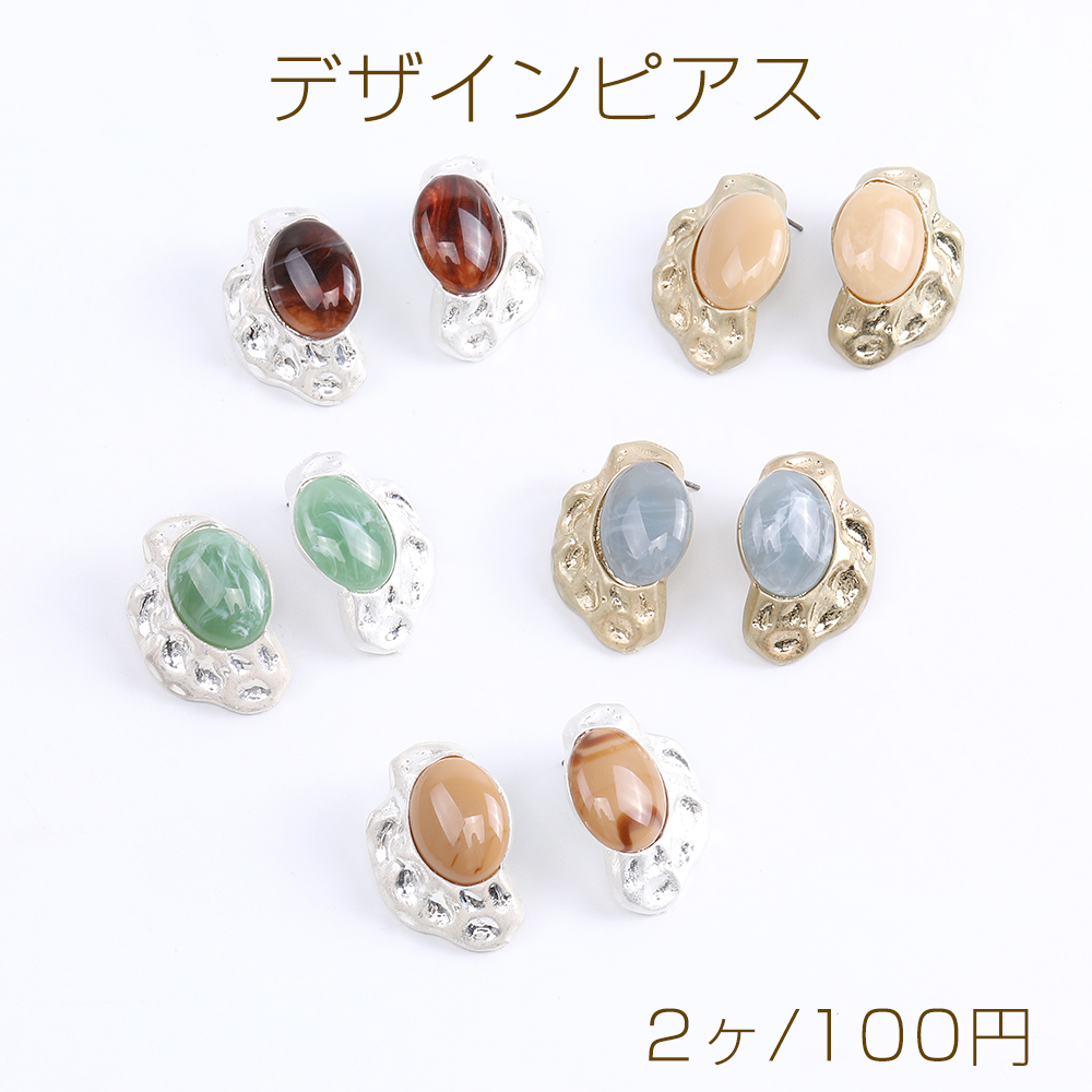 デザインピアス 樹脂付きピアス 不規則型 19×27mm【2ヶ】
