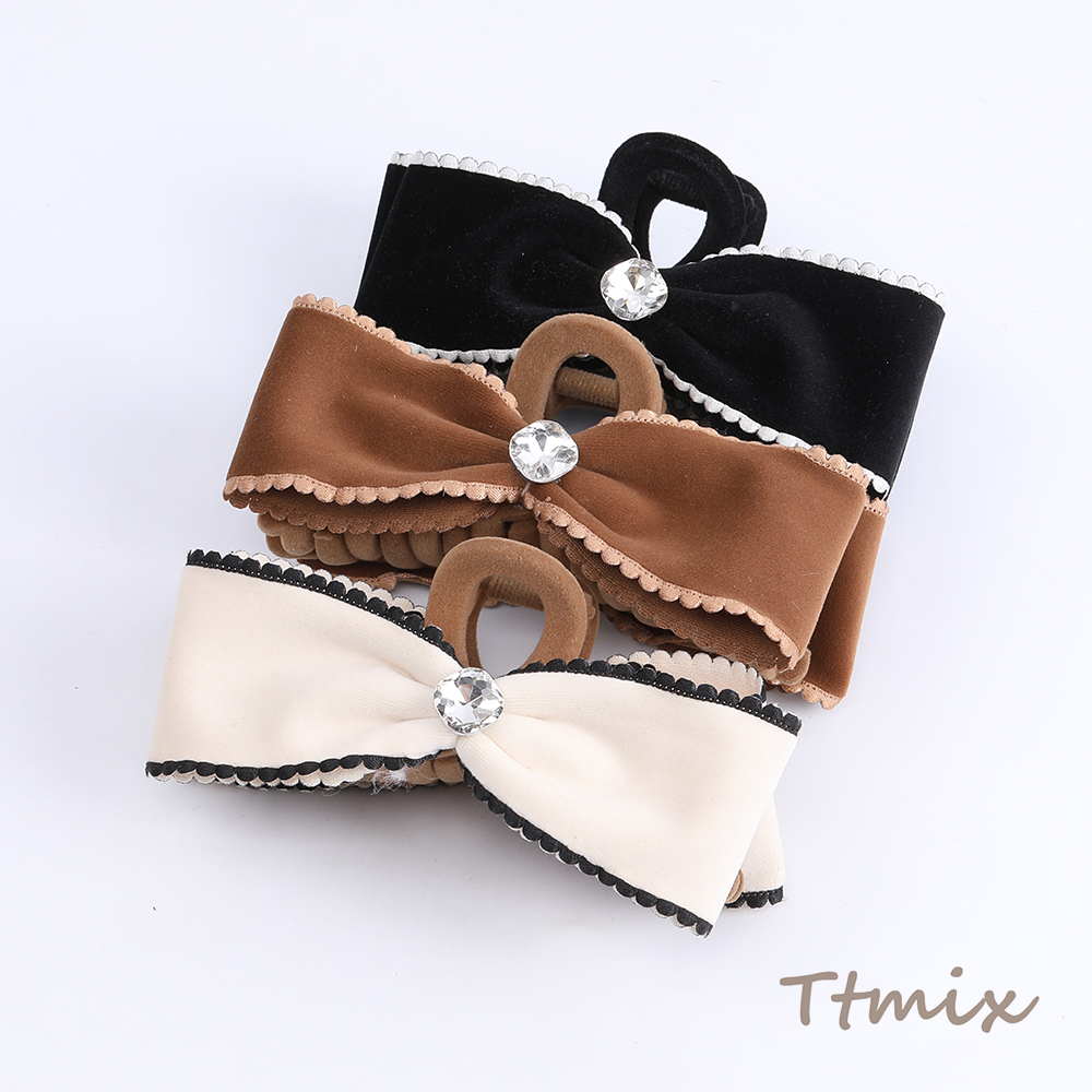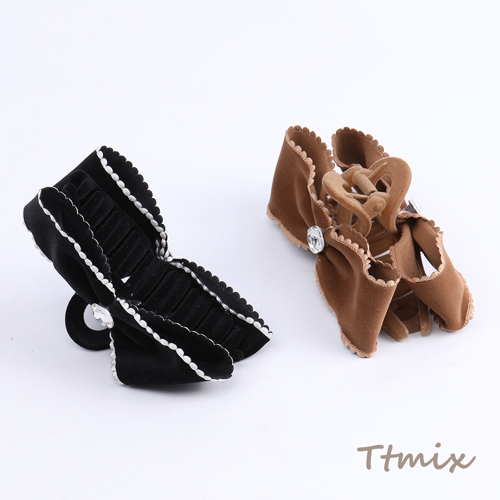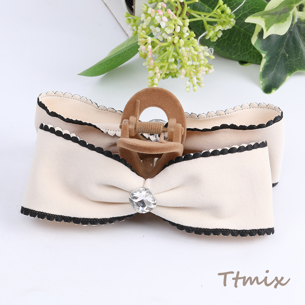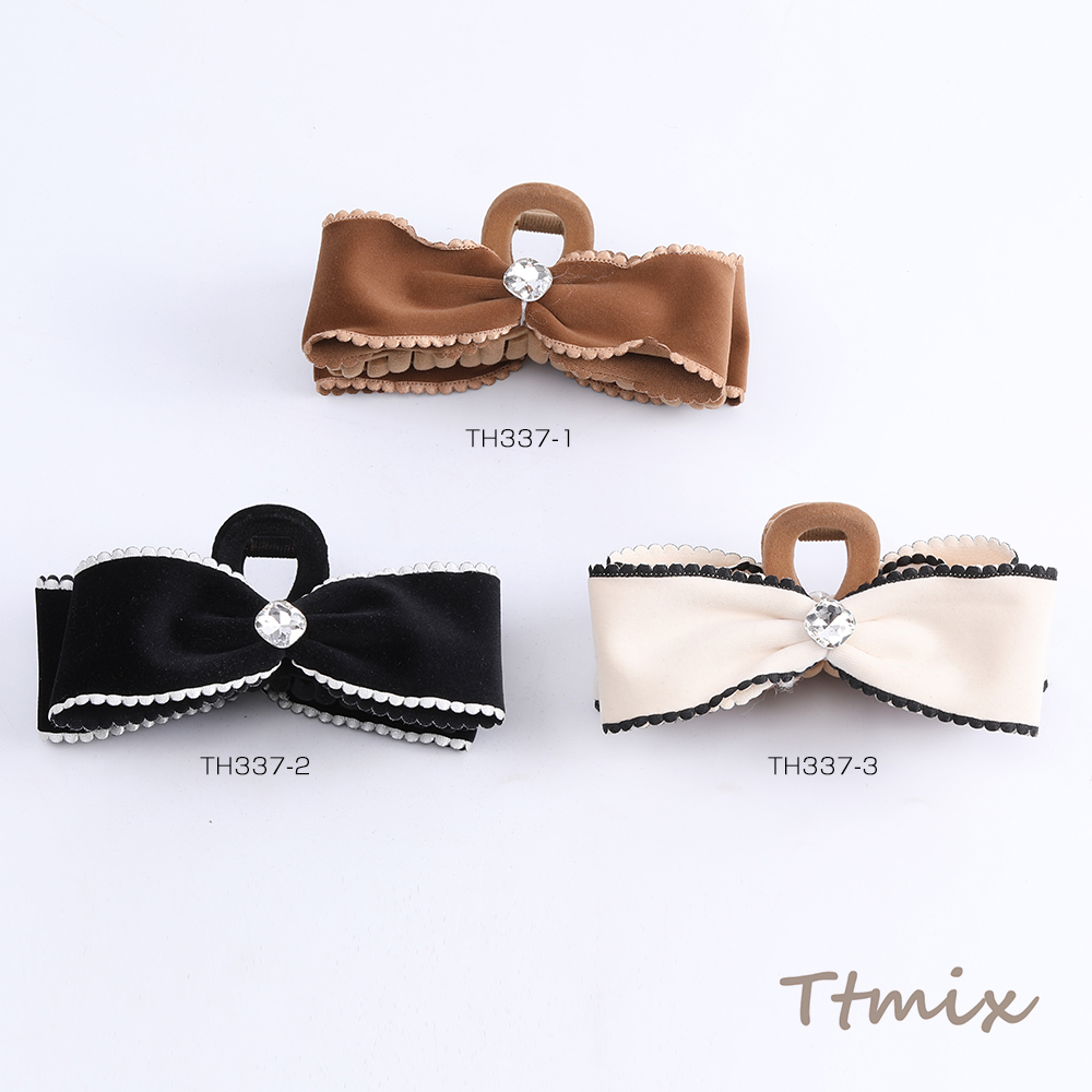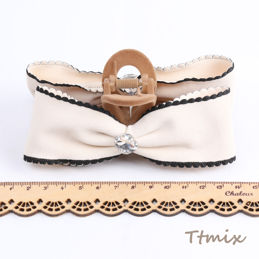 フロッキー付きバンスクリップ ヘアアクセサリー リボン 4×12cm(1ヶ)