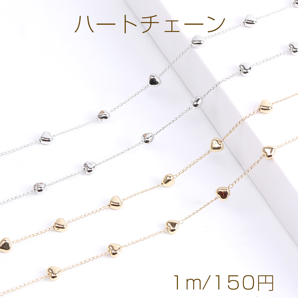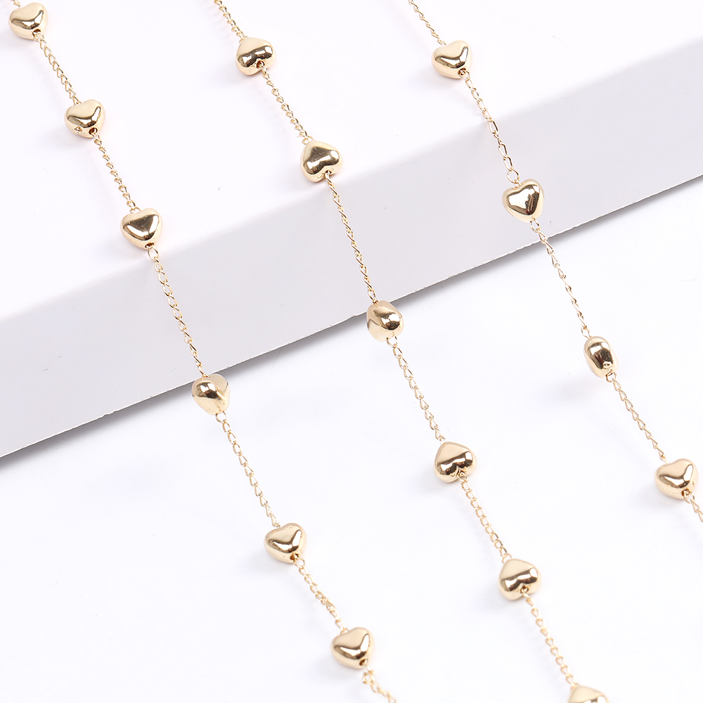 高品質ハートチェーン デザインチェーン ハンドメードチェーン 6mm 16Kゴールドメッキ 色落ちしにくい(1m)