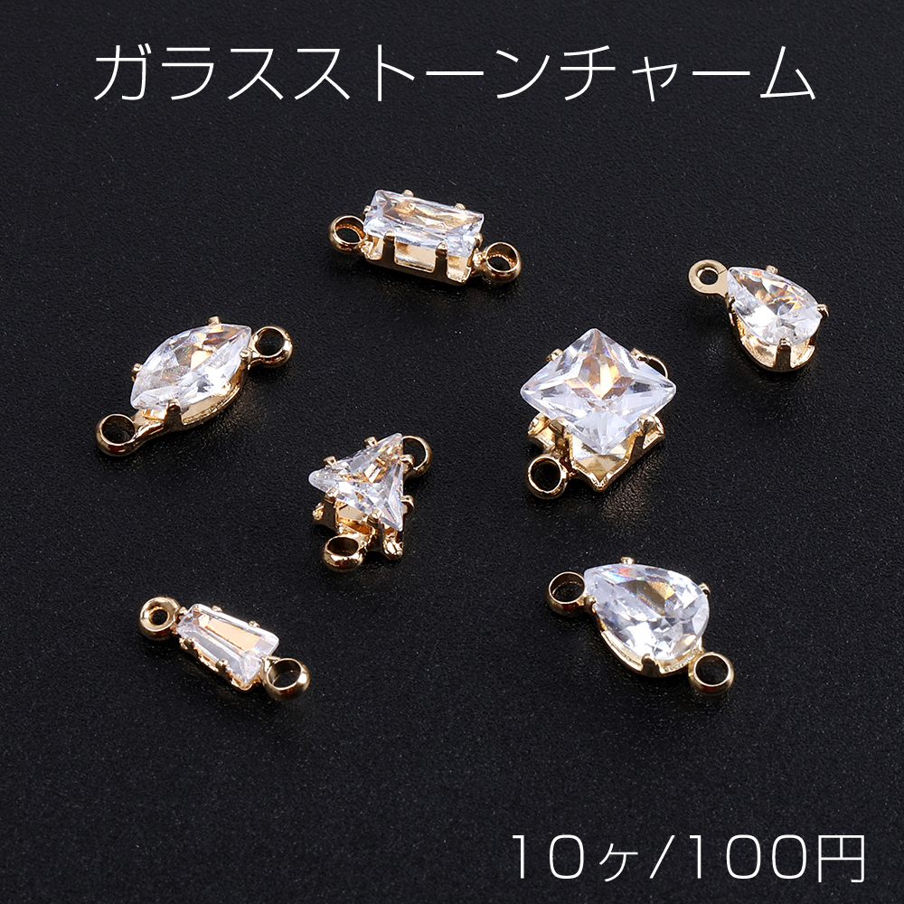 高品質ガラスストーンチャーム 全7種 ゴールド(10ヶ)