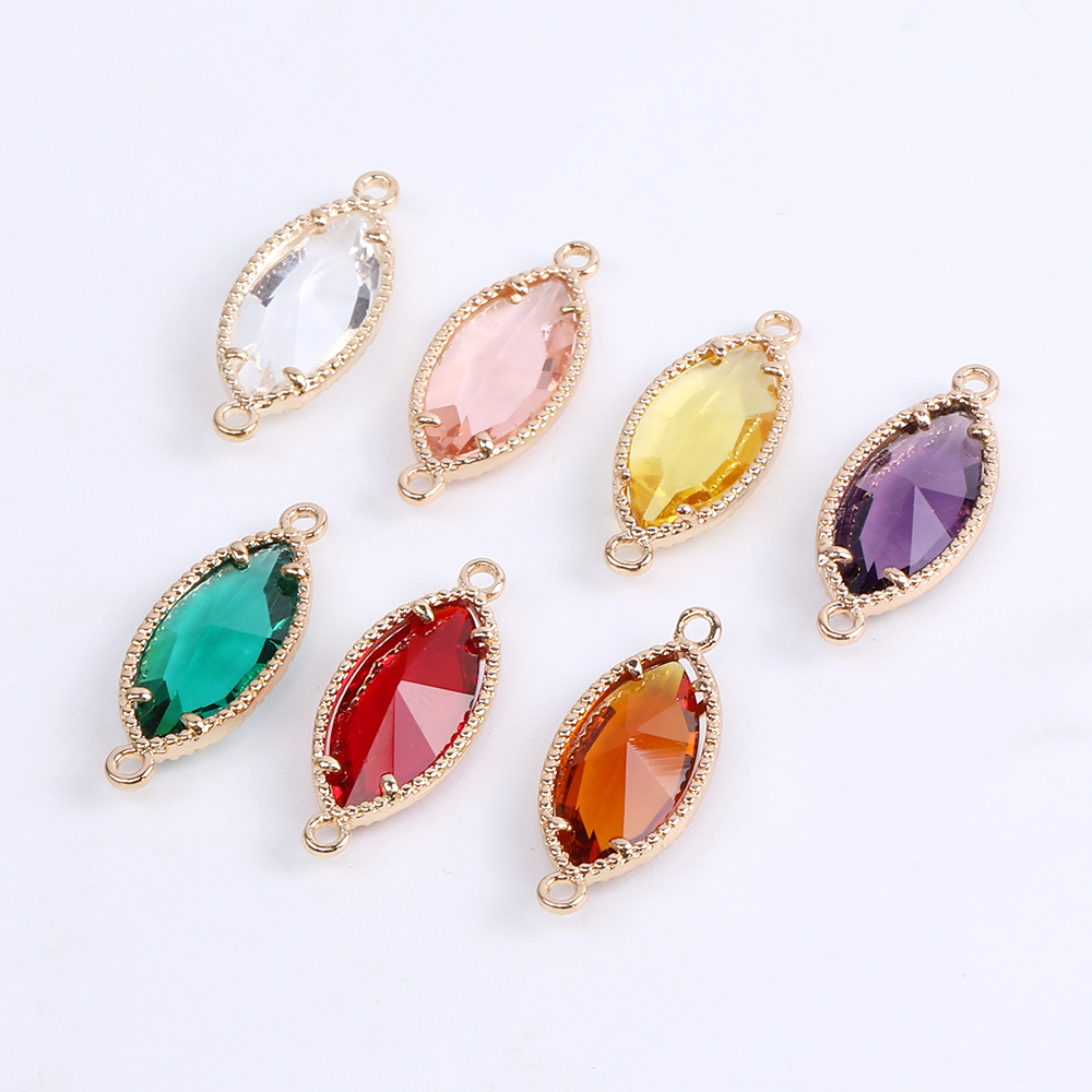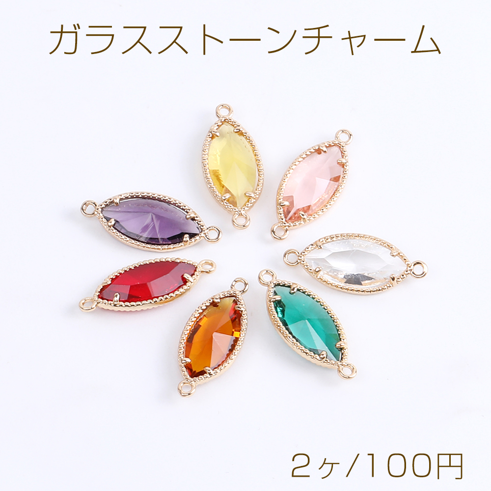 ガラスストーンコネクターチャーム ホースアイ 2カン付き 8×21mm ゴールド(2ヶ)