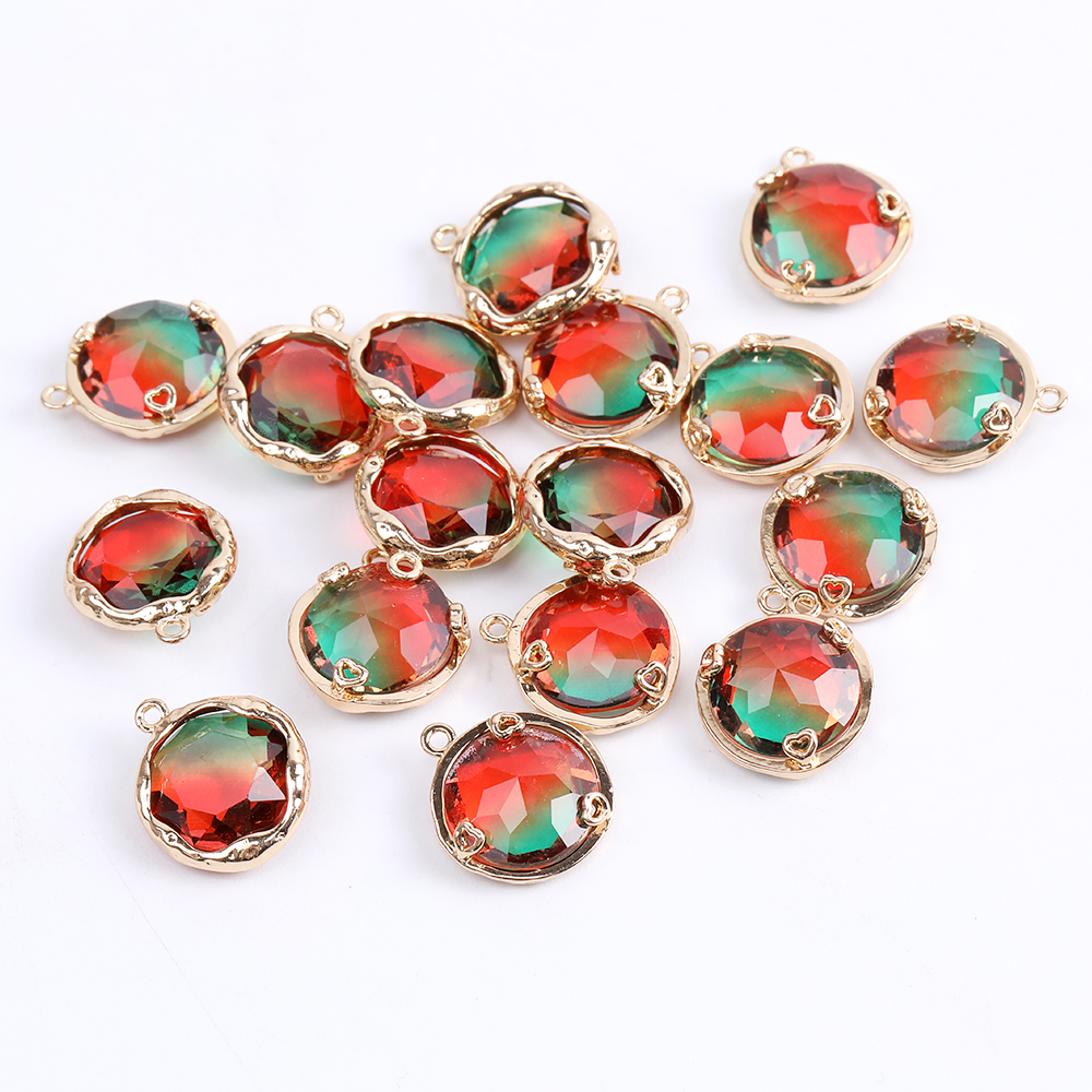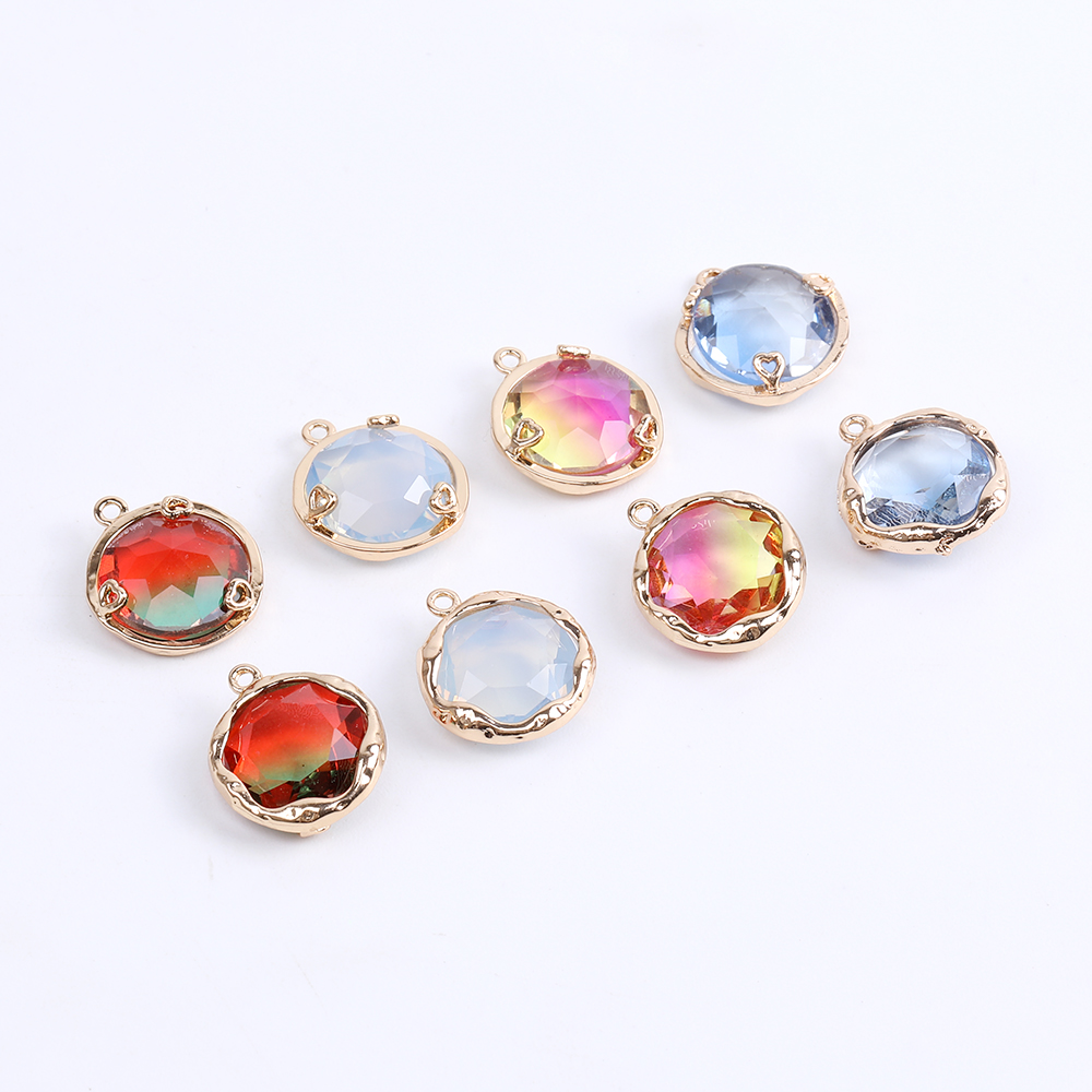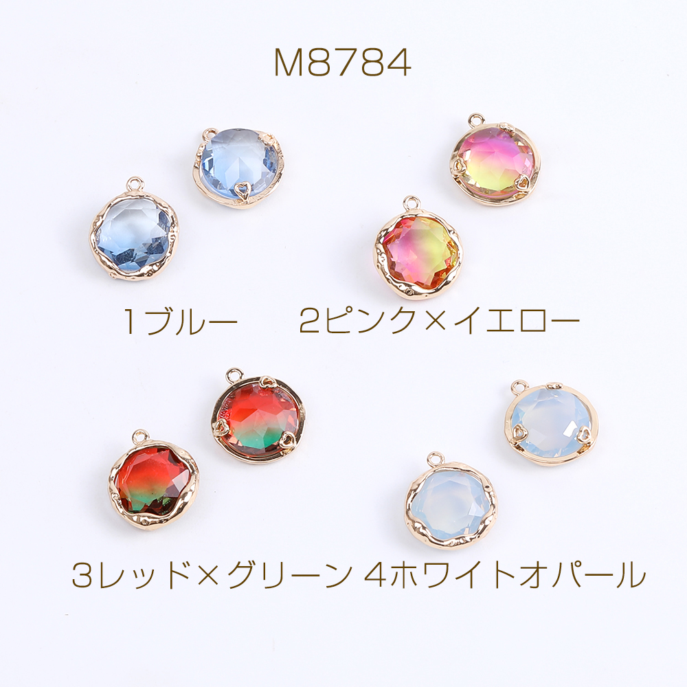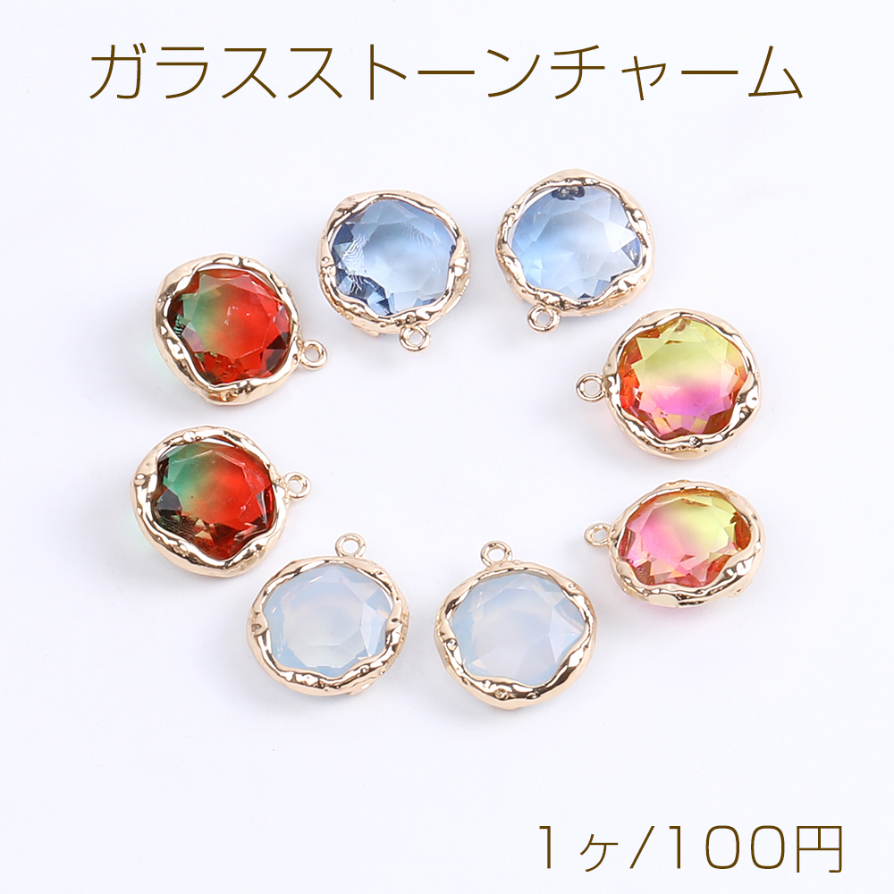 ガラスストーンチャーム ラウンド カン付き 12×14mm ゴールド(1ヶ)