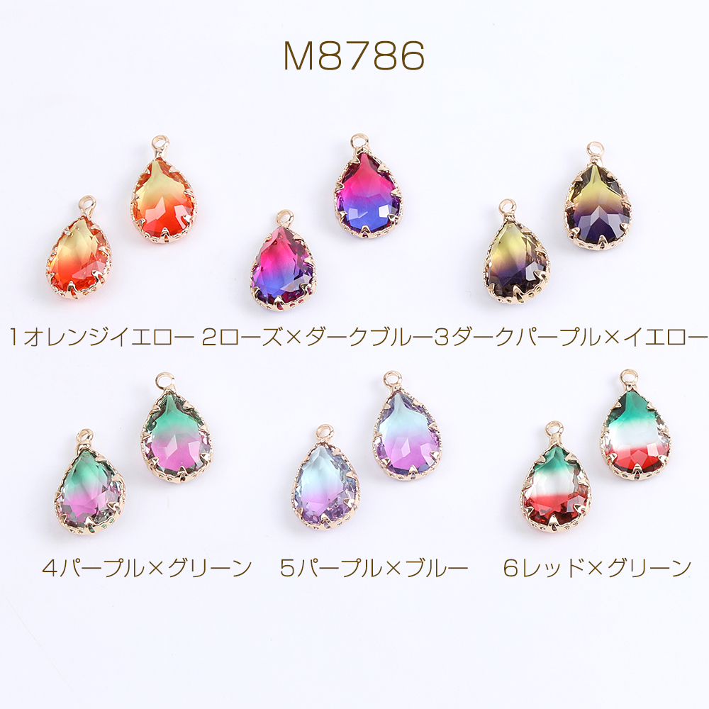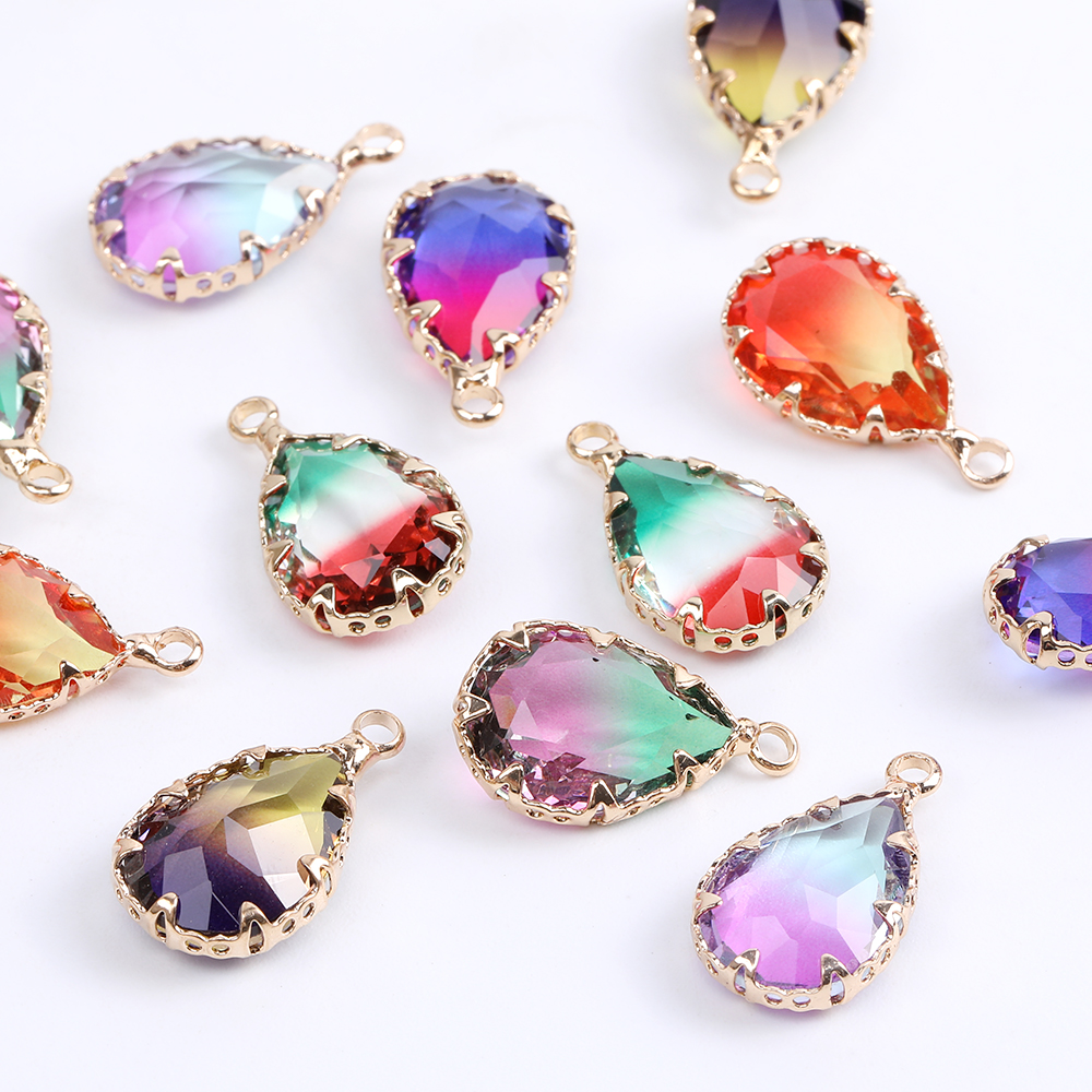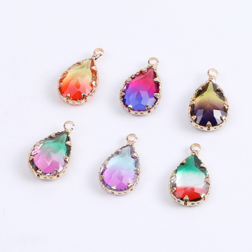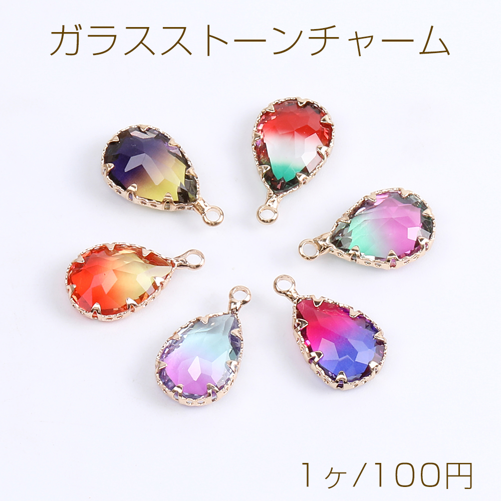 ガラスストーンチャーム しずく型 カン付き 11×19mm ゴールド(1ヶ)