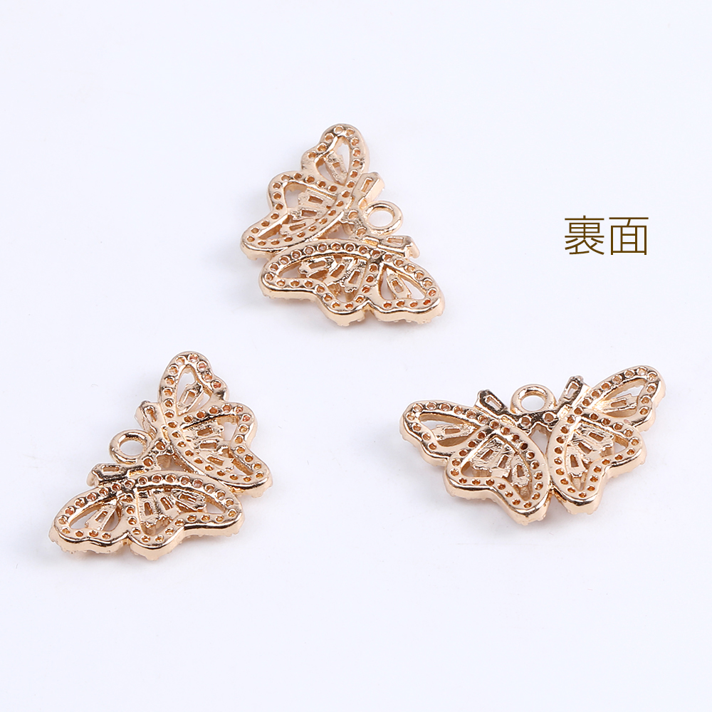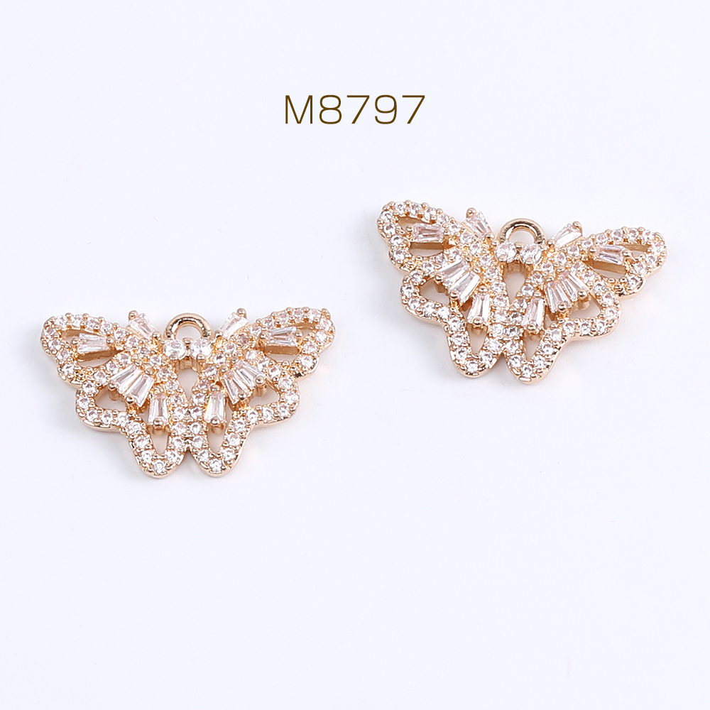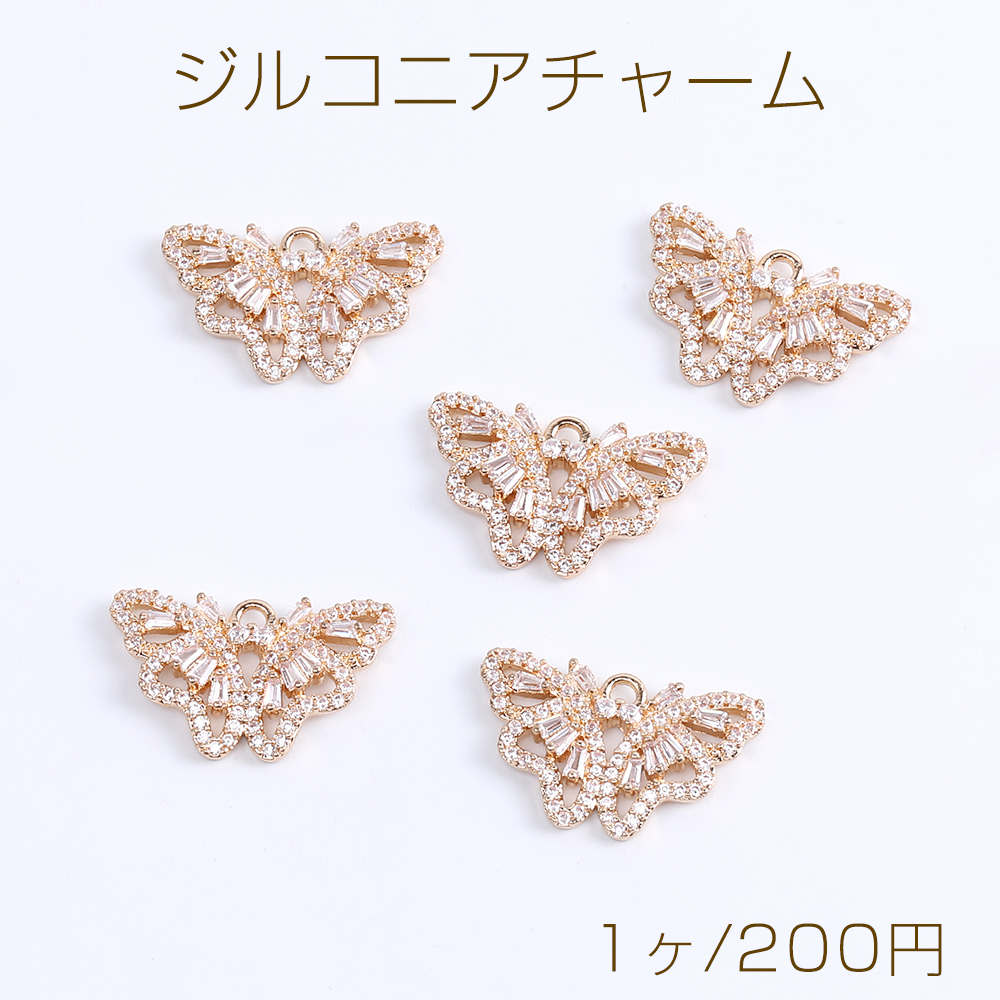 高品質ジルコニアチャーム 蝶 カン付き 14×23mm ゴールド(1ヶ)
