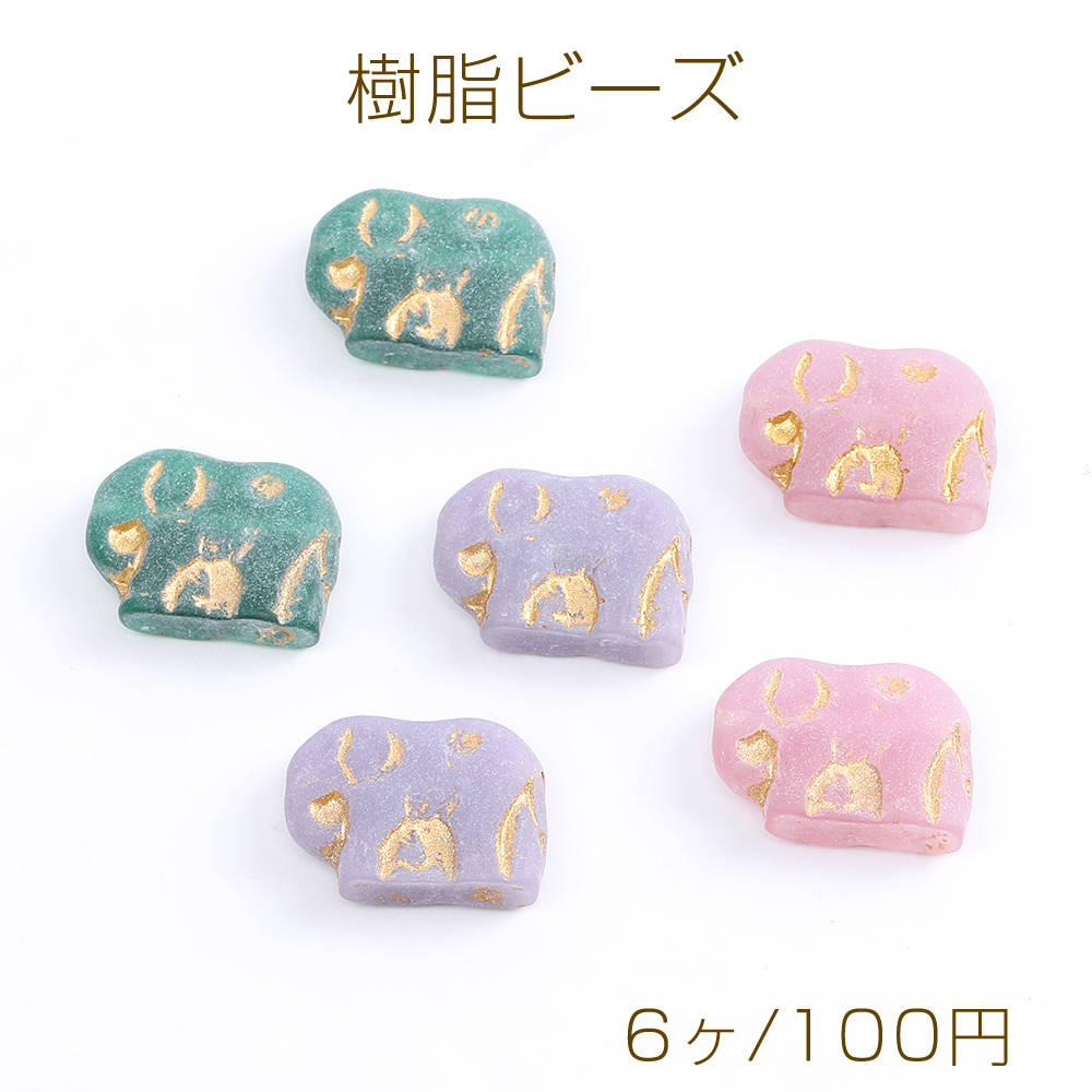 樹脂ビーズ 象 ゴールド 15×19mm(6ヶ)