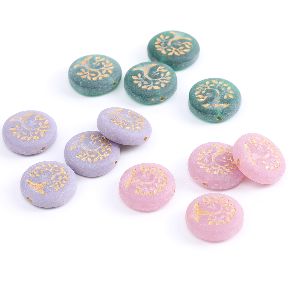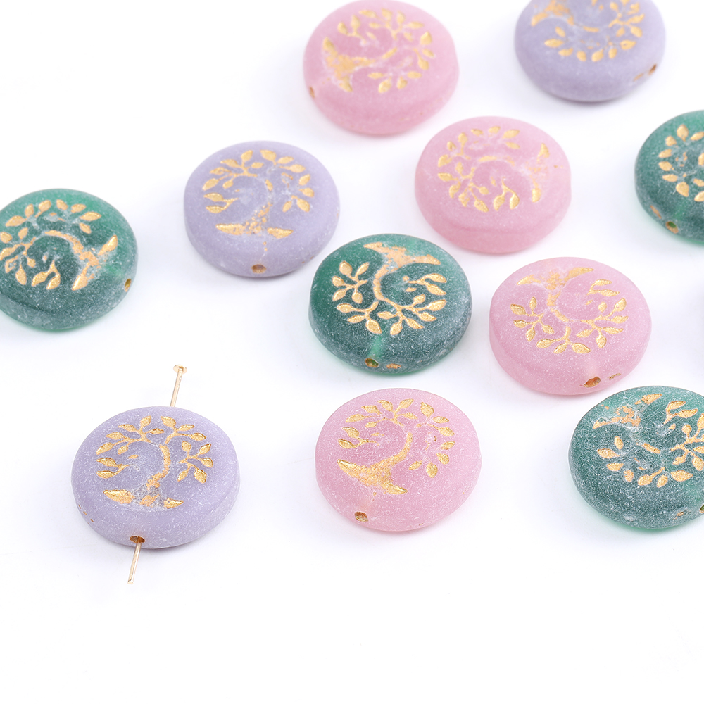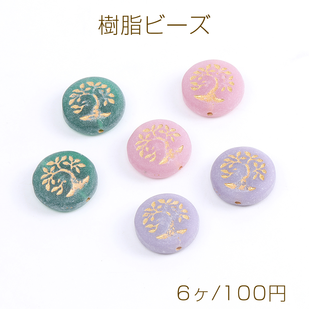 樹脂ビーズ コイン型 盆栽 ゴールド 18mm(6ヶ)