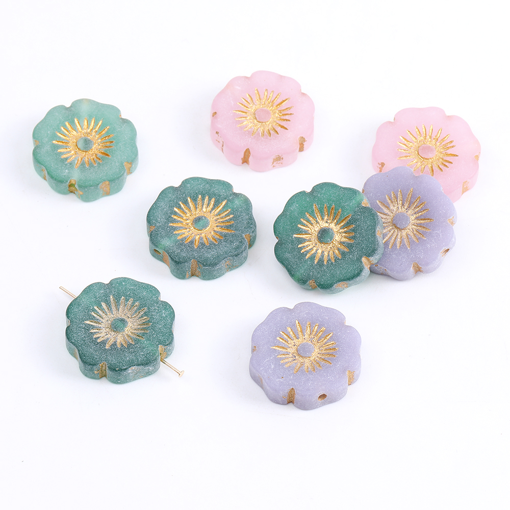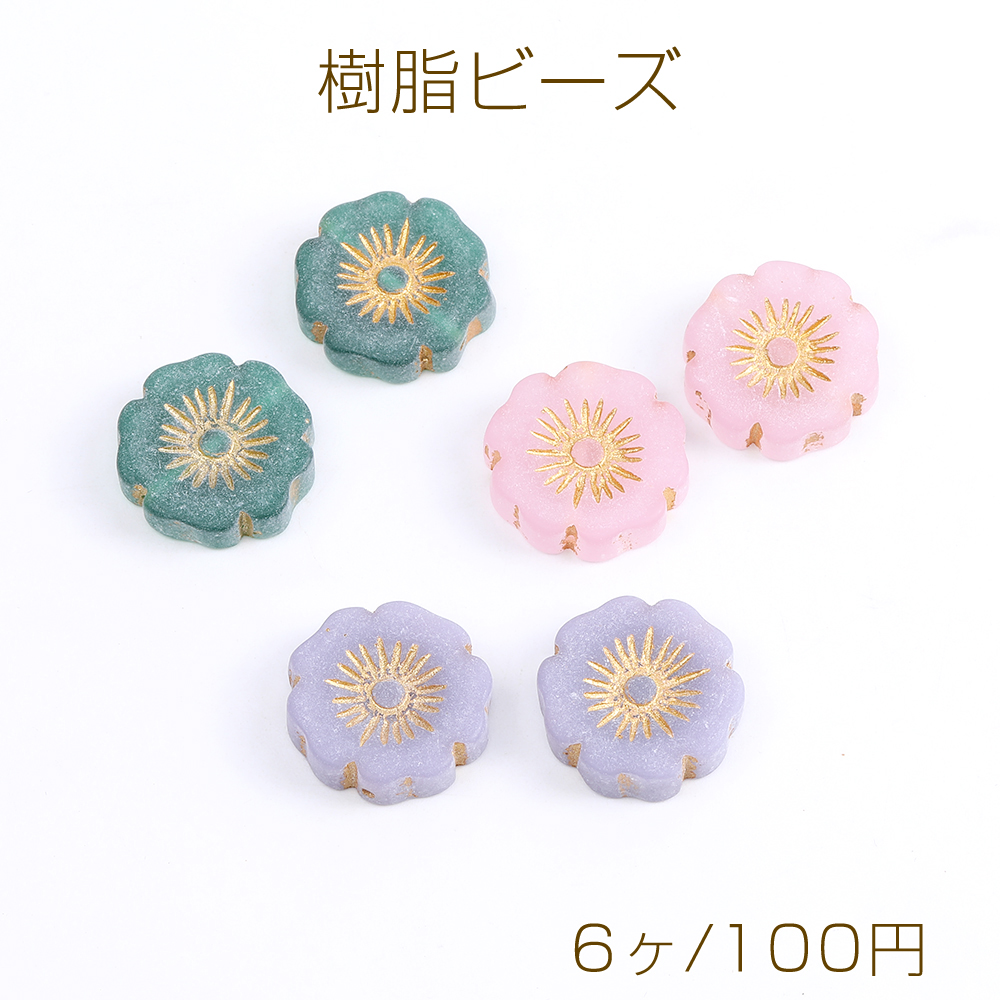 樹脂ビーズ ハワイアンフラワー ゴールド 21mm(6ヶ)