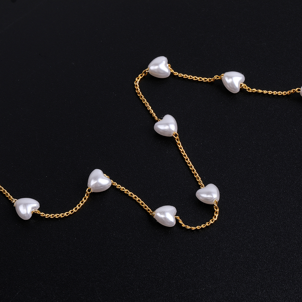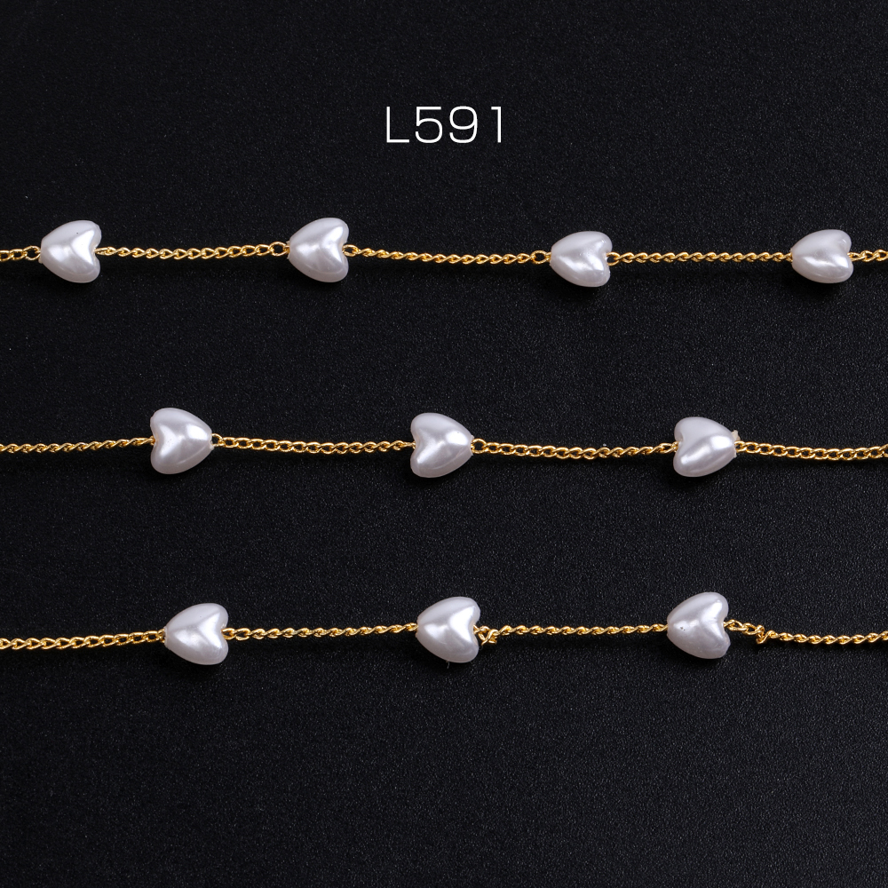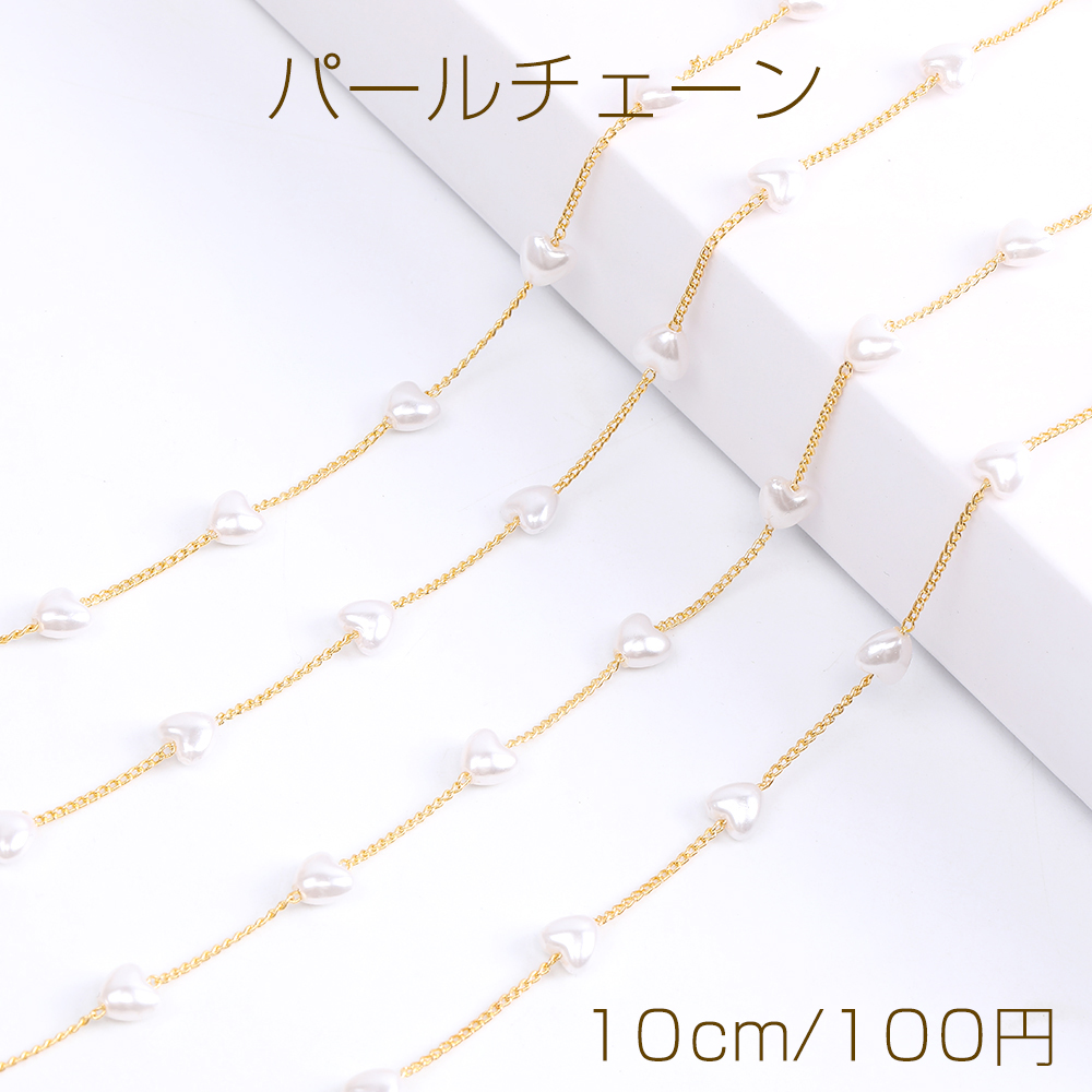 高品質パールチェーン ハンドメードチェーン ハート型A 6mm 16Kゴールドメッキ 色落ちしにくい(10cm)