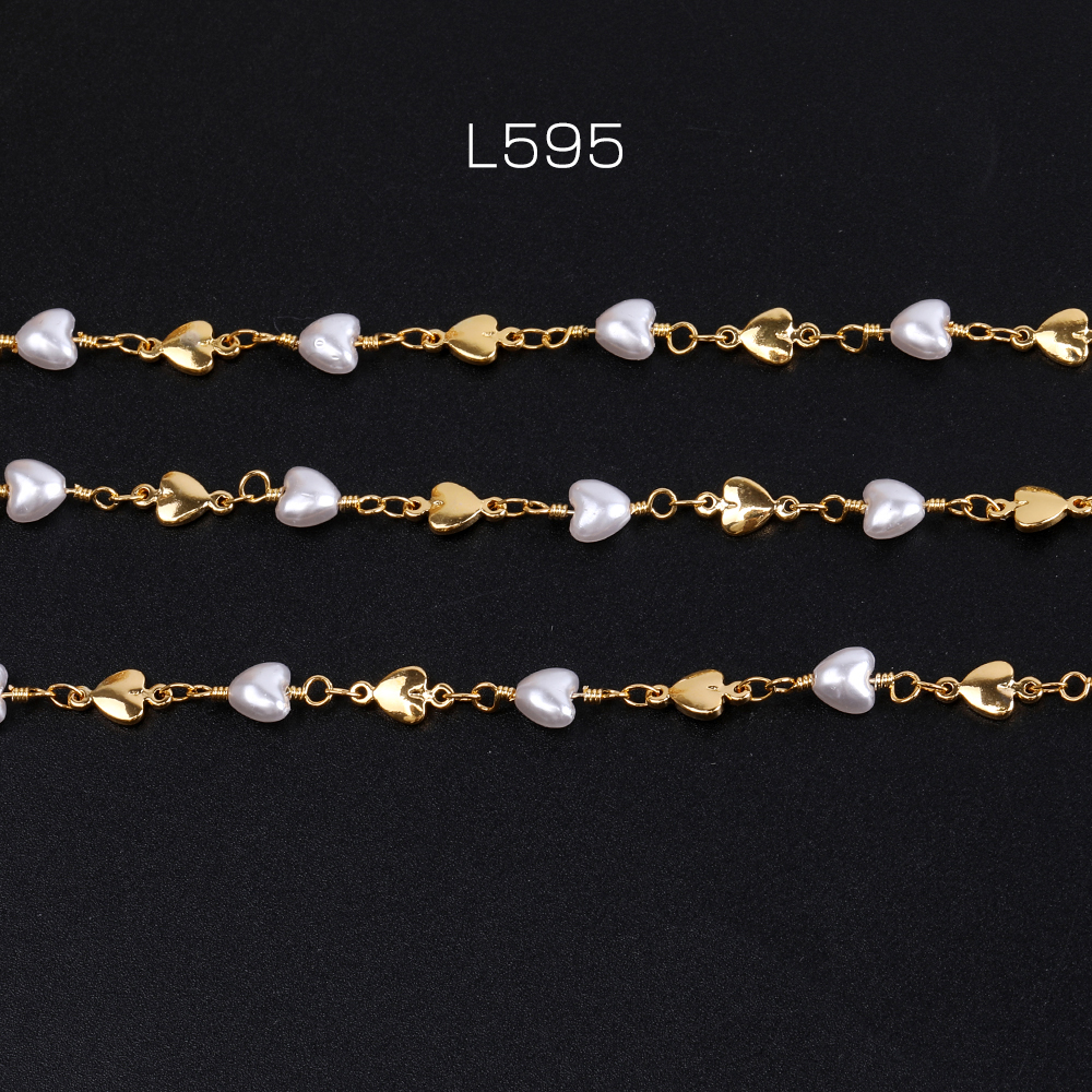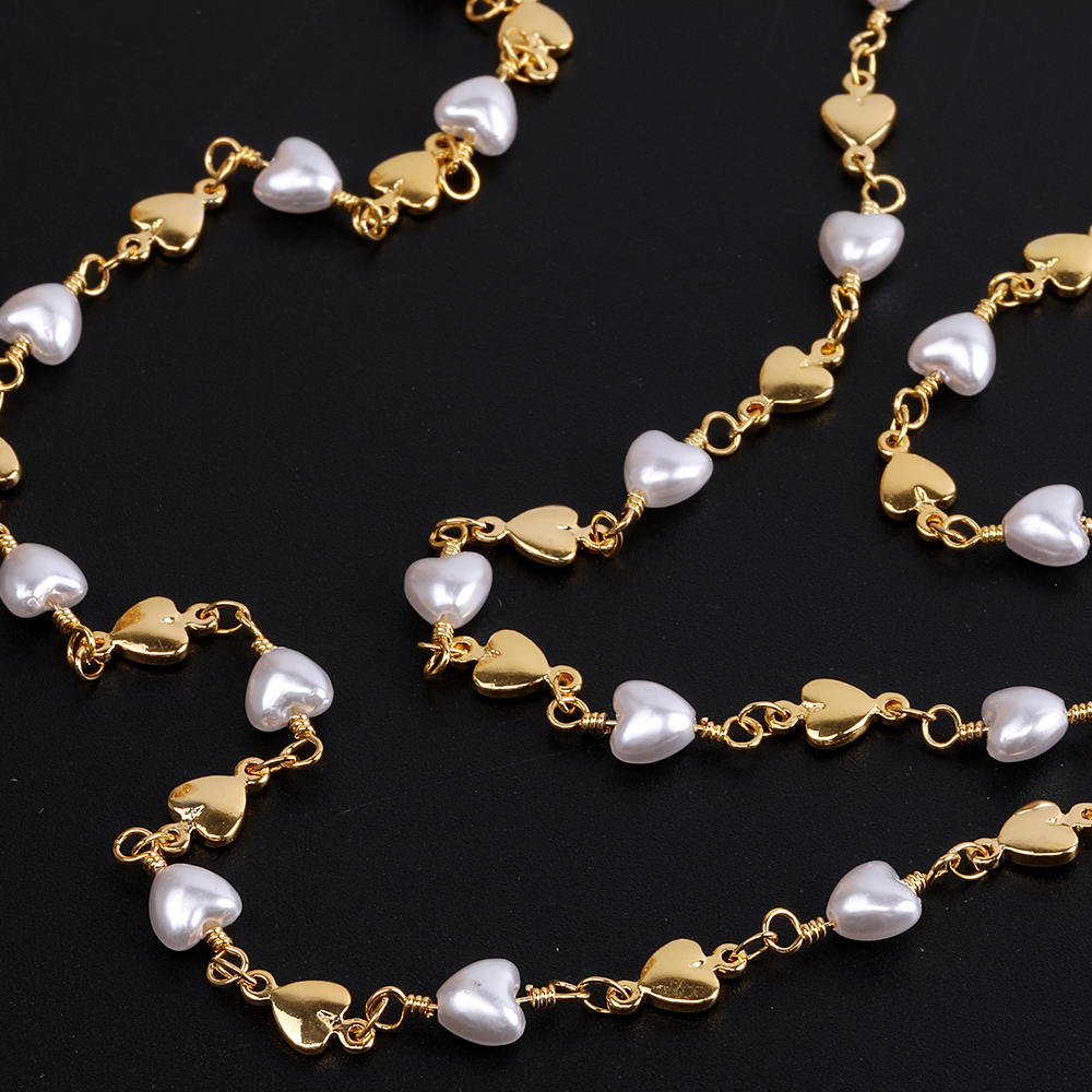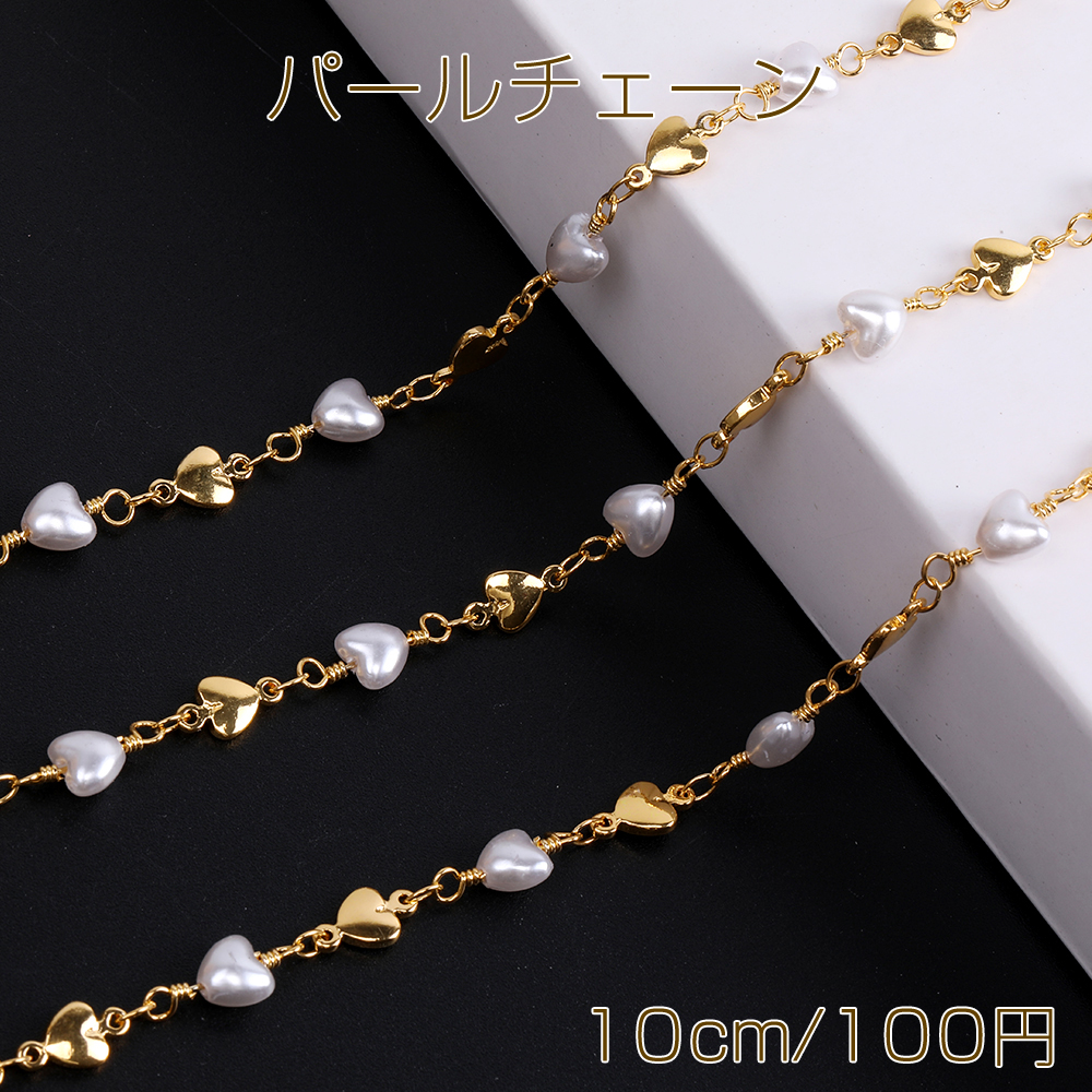 高品質パールチェーン ハンドメードチェーン ハート型B 6mm 16Kゴールドメッキ 色落ちしにくい(10cm)