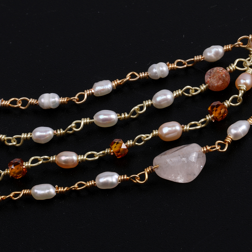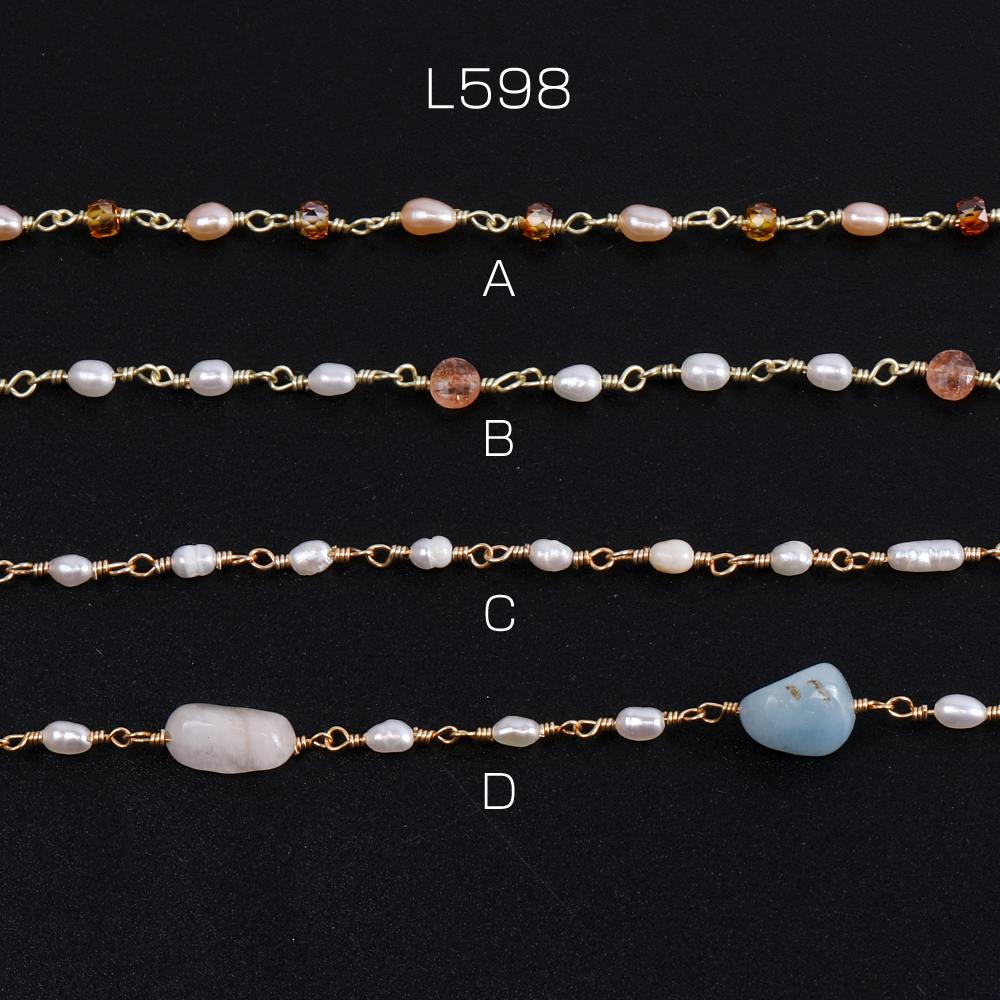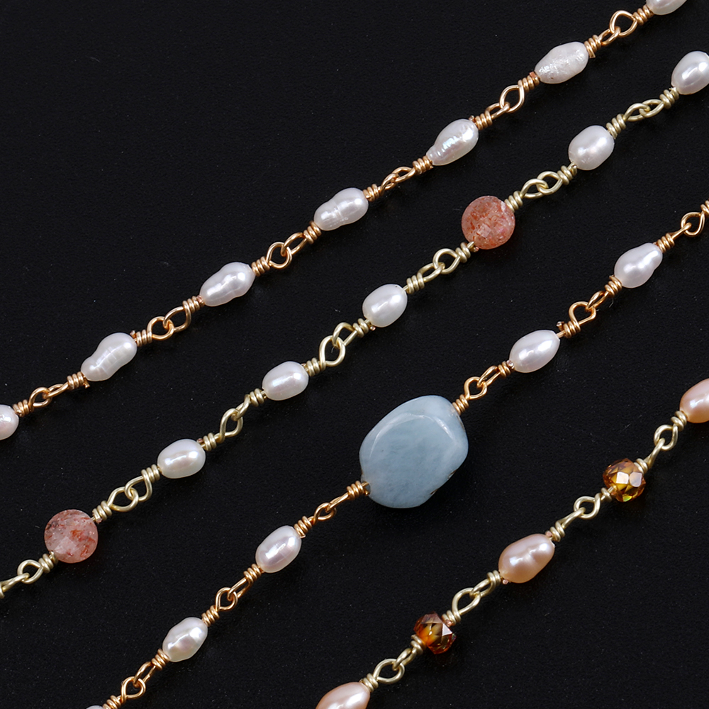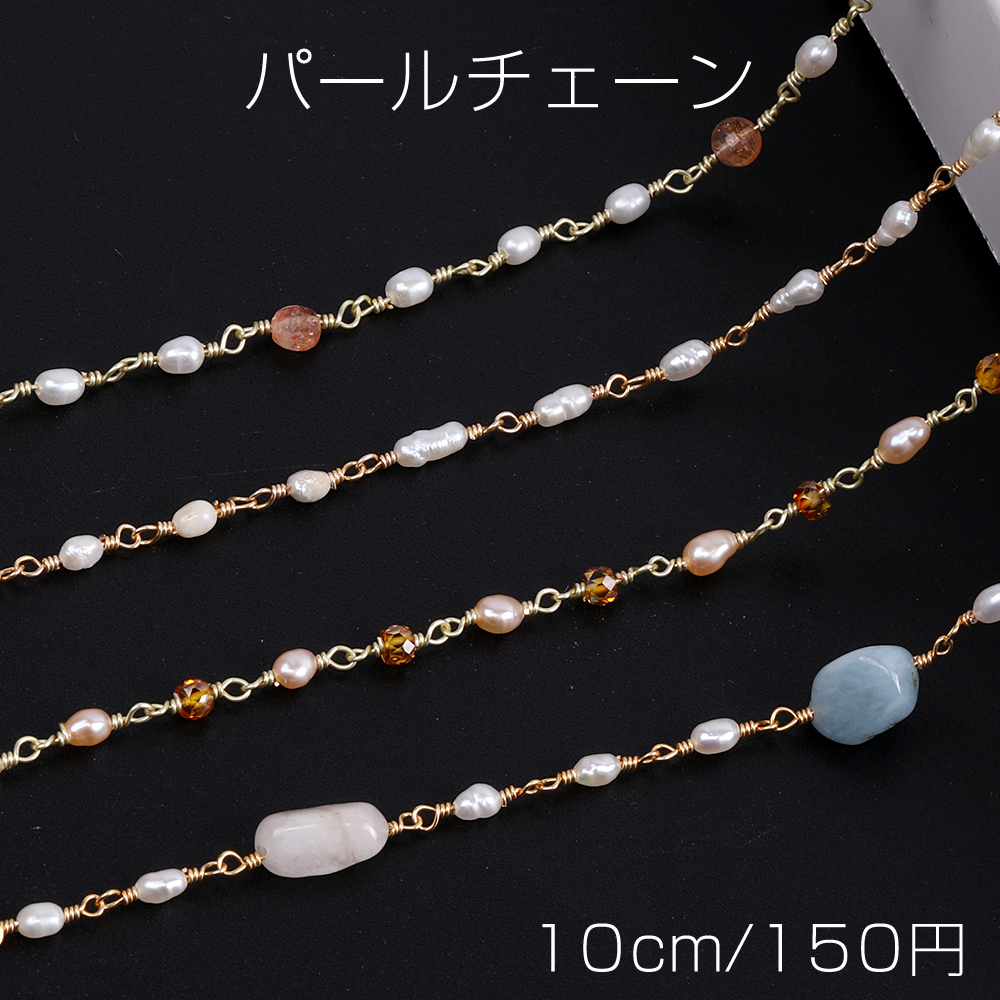 高品質淡水パールチェーン ハンドメードチェーン オーバル 3×4mm 16Kゴールドメッキ 色落ちしにくい