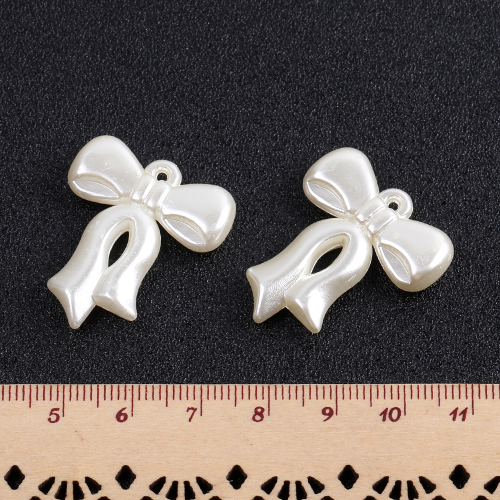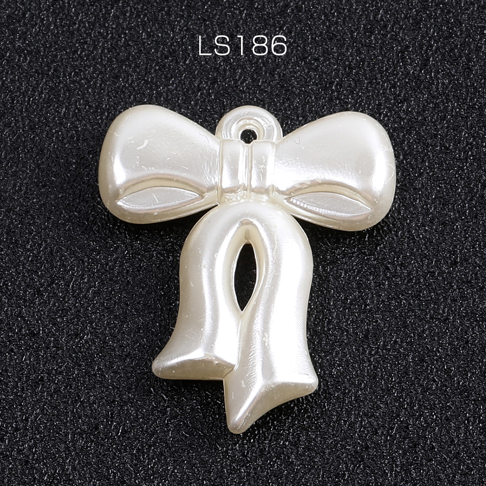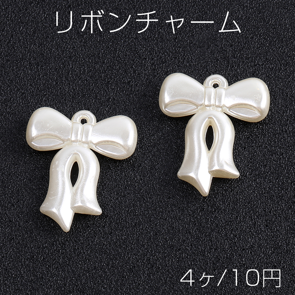 リボンチャーム ABS樹脂パールチャーム カン付き 26×30mm ホワイト(4ヶ)
