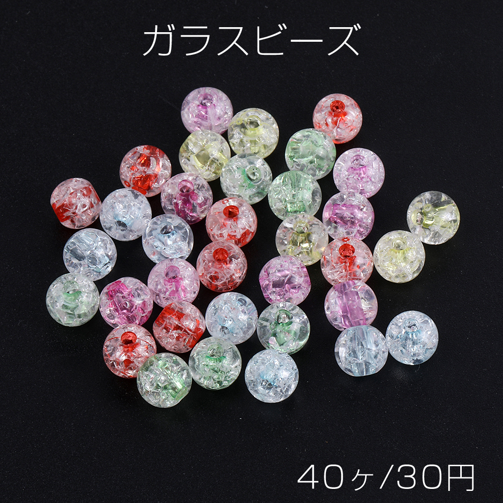 ガラスビーズ クラック加工 丸玉 8mm(40ヶ)
