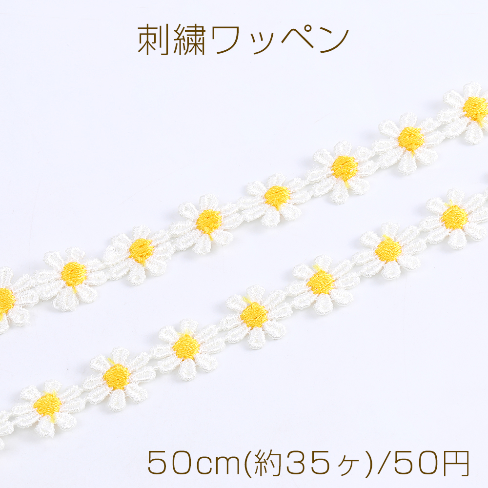 刺繍ワッペン フラワー 13mm イエロー 50cm(約35ヶ)