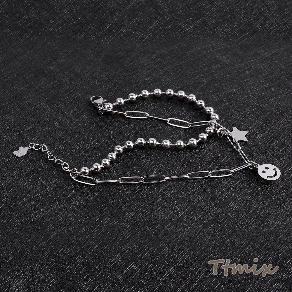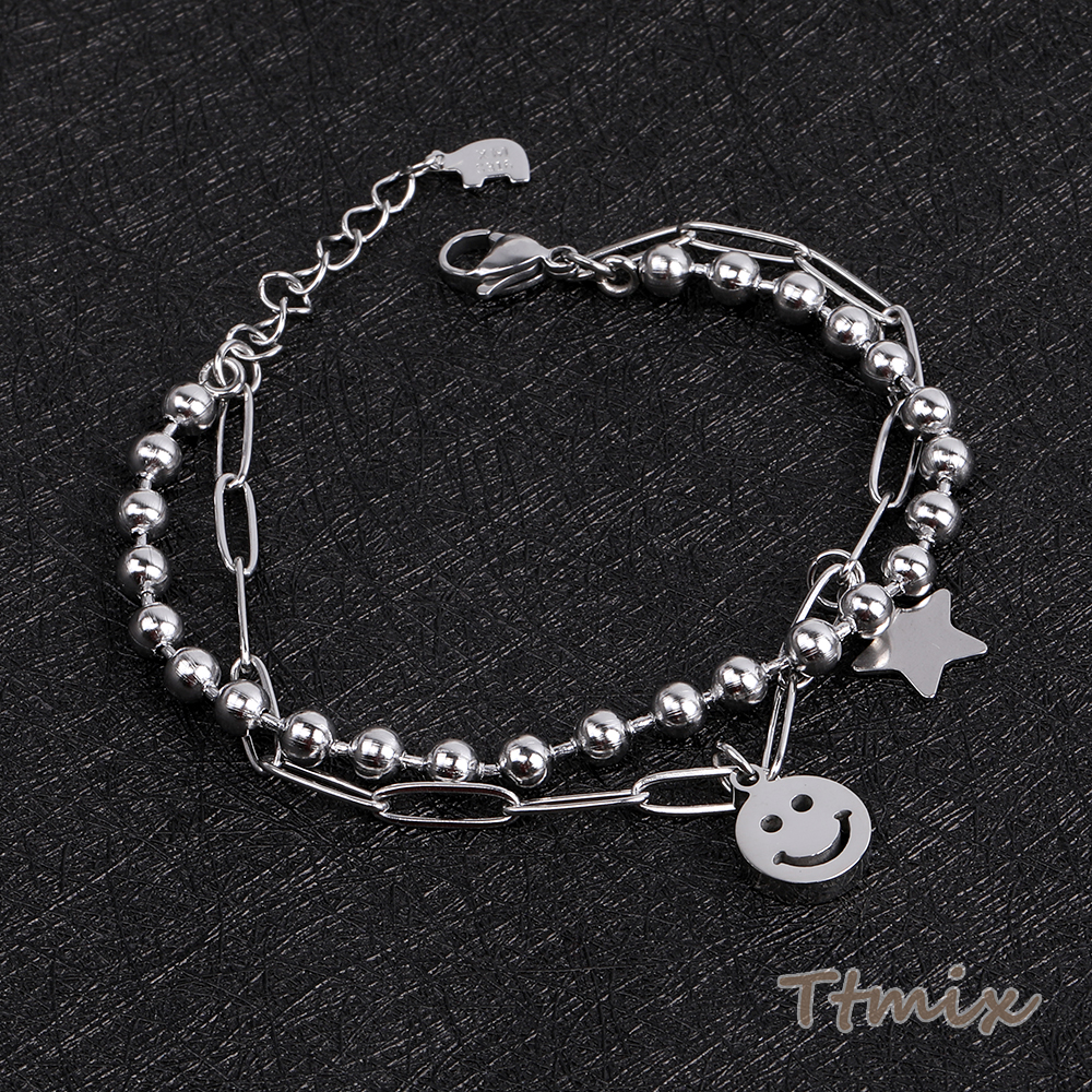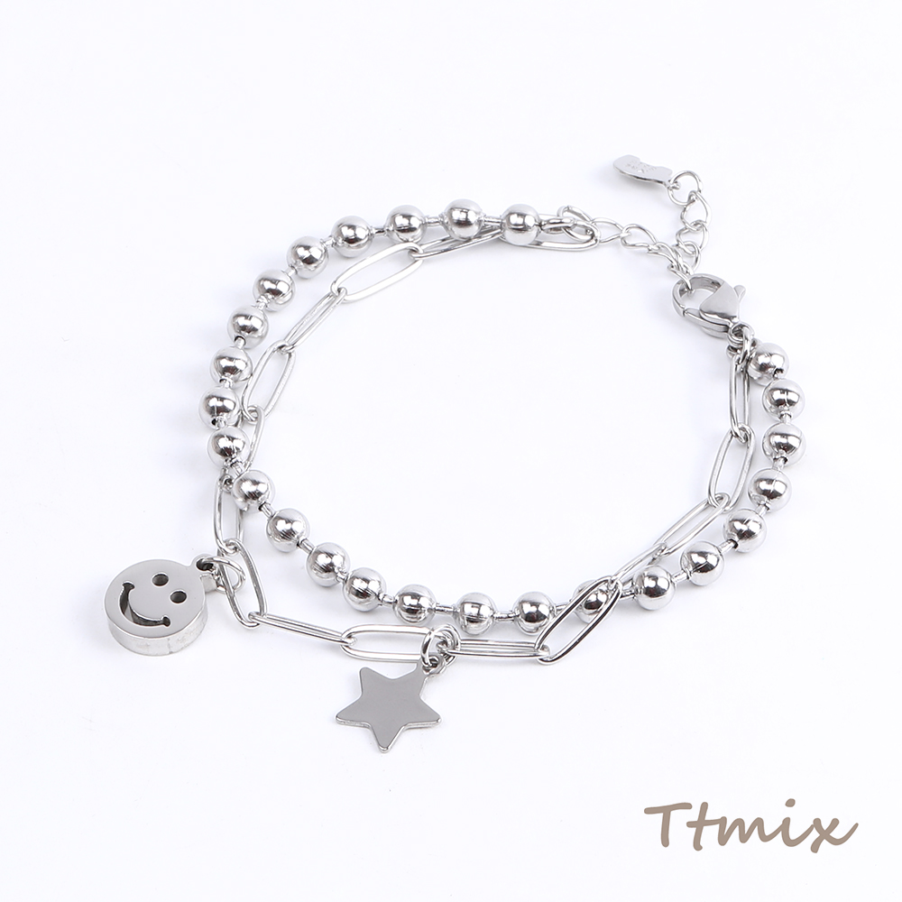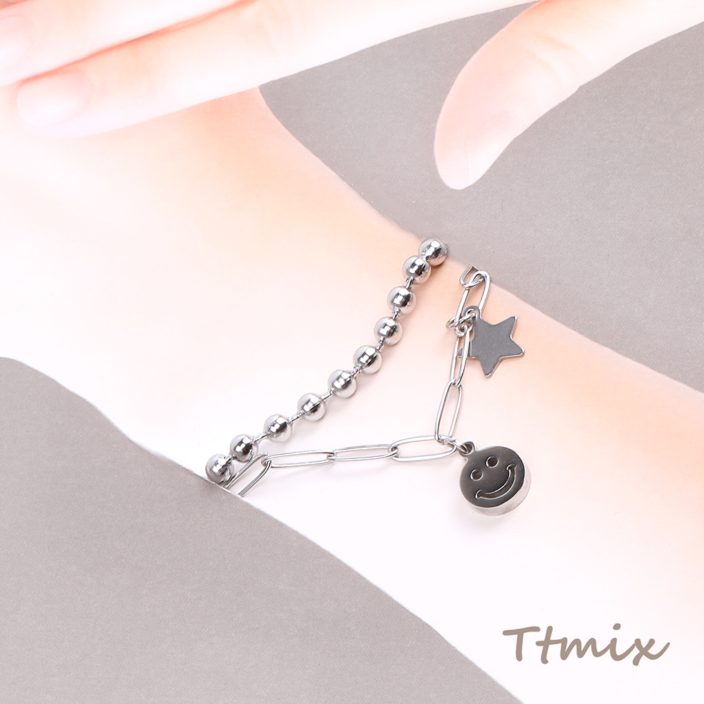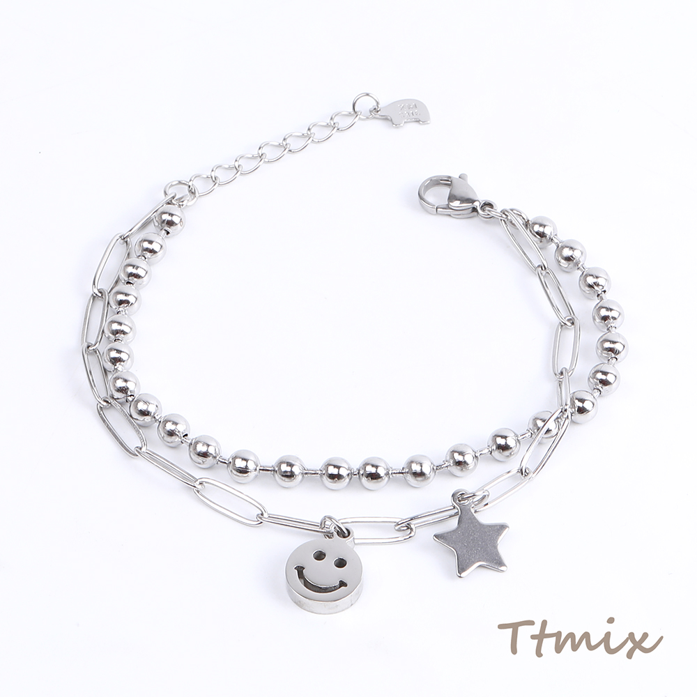 メタルチェーンブレスレット 星形&スマイリーチャーム付き 20cm ロジウム(1連)