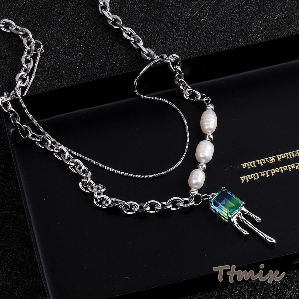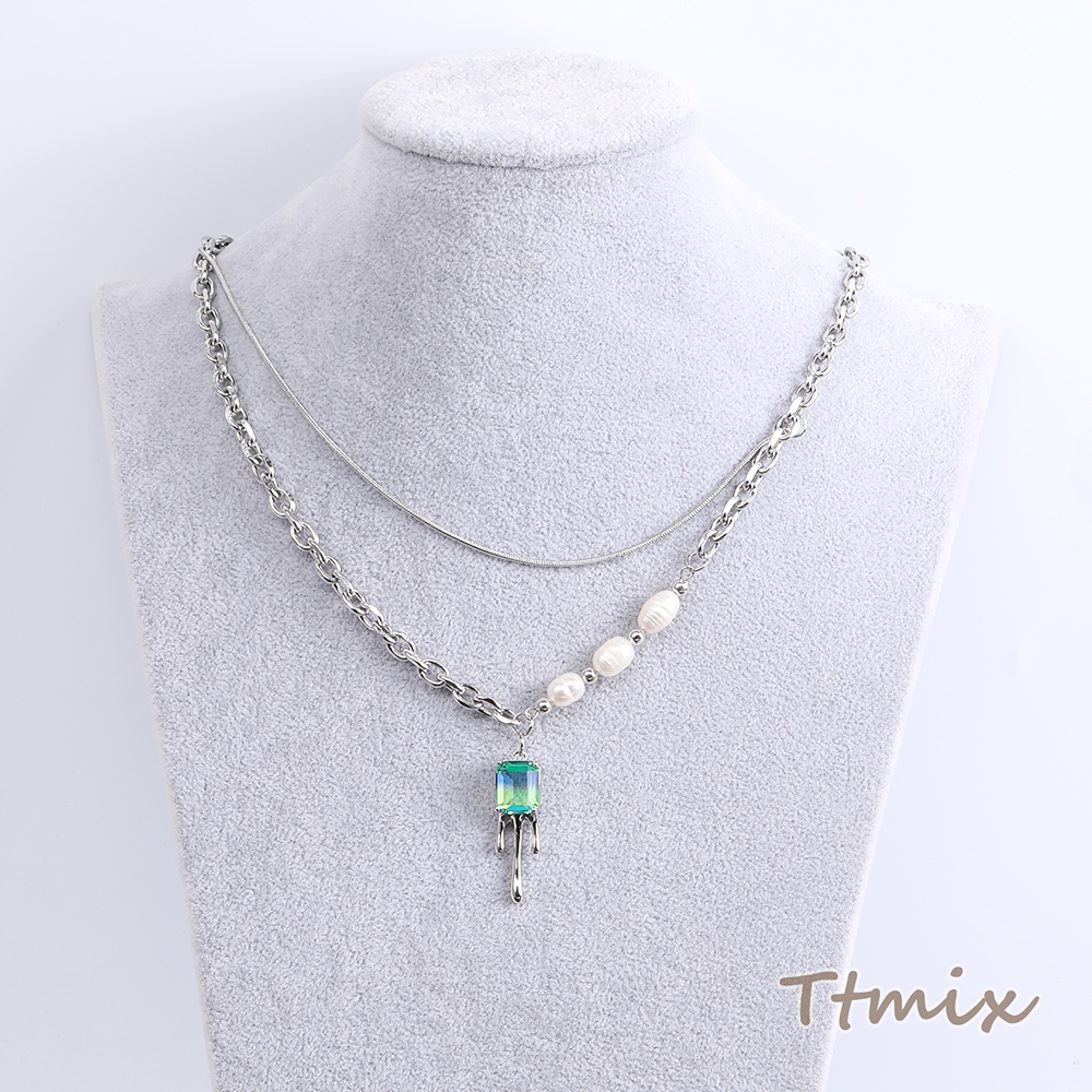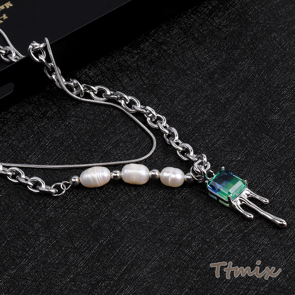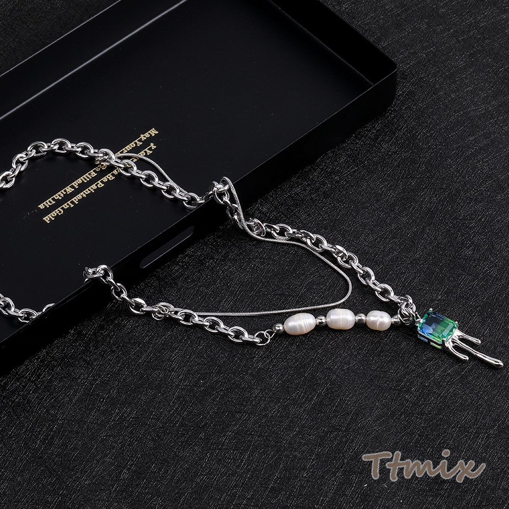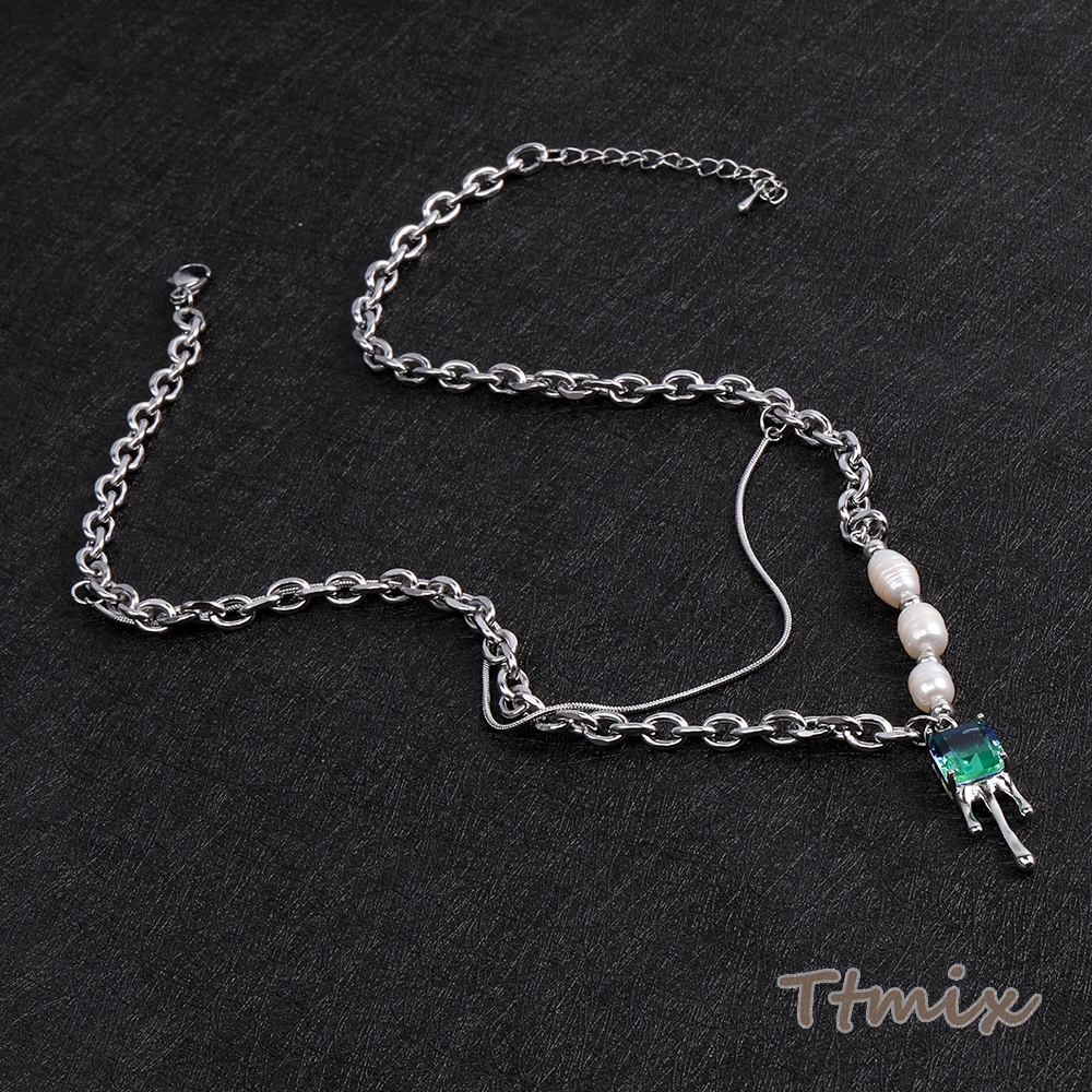 メタルネックレス ガラスストーンチャーム付き 43cm ロジウム(1連)