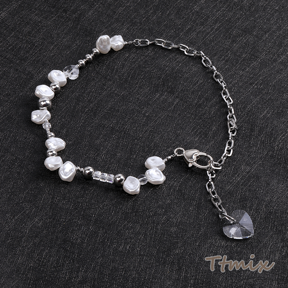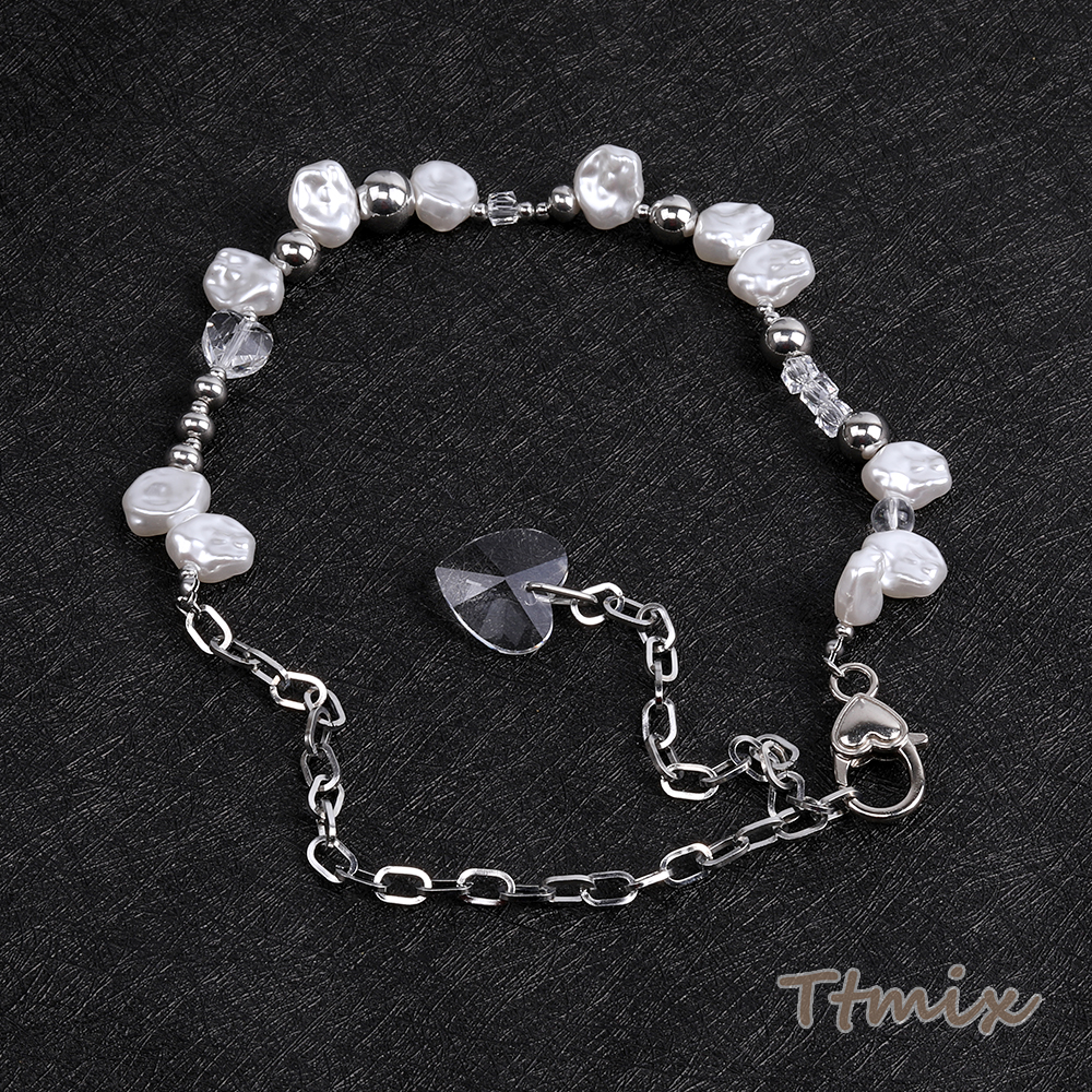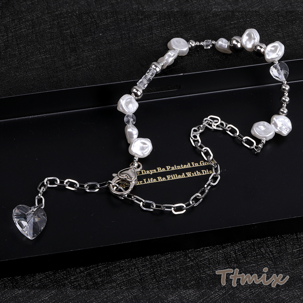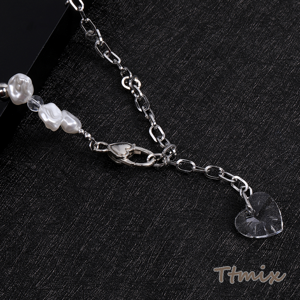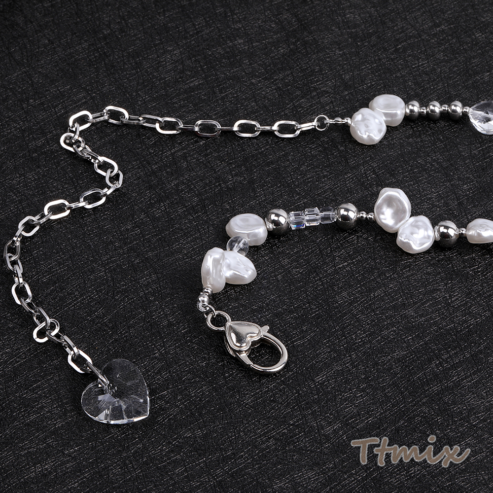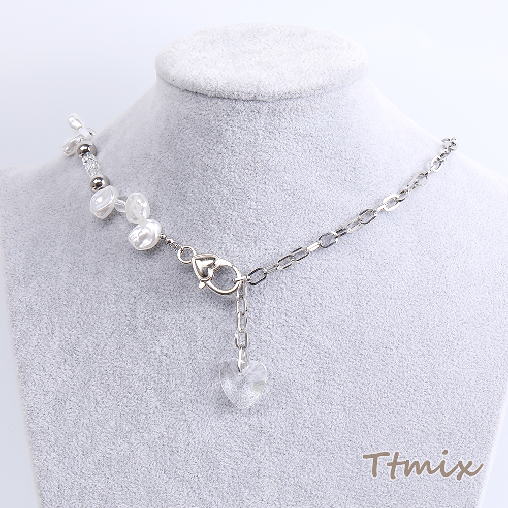 メタルネックレス ハートガラスチャーム付き 43cm ロジウム(1連)