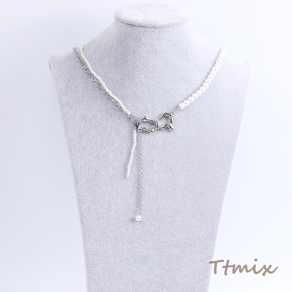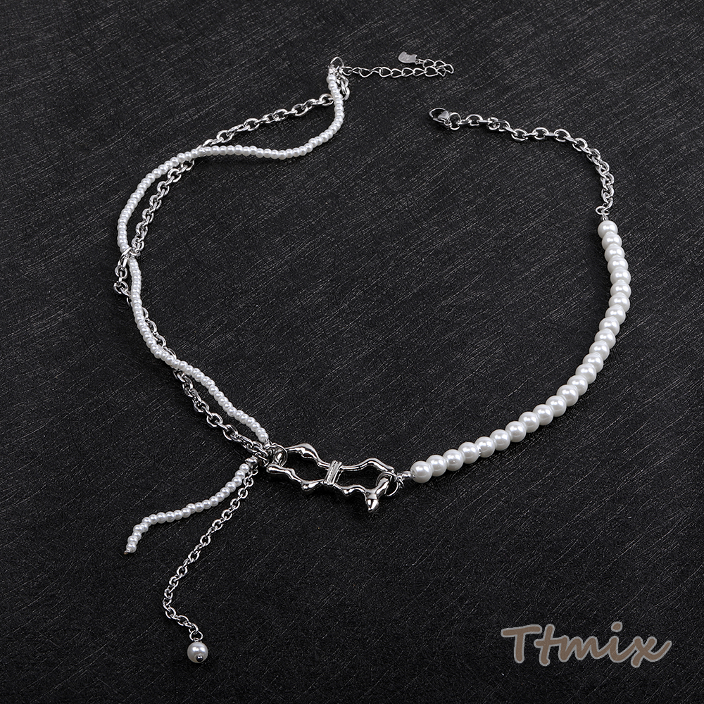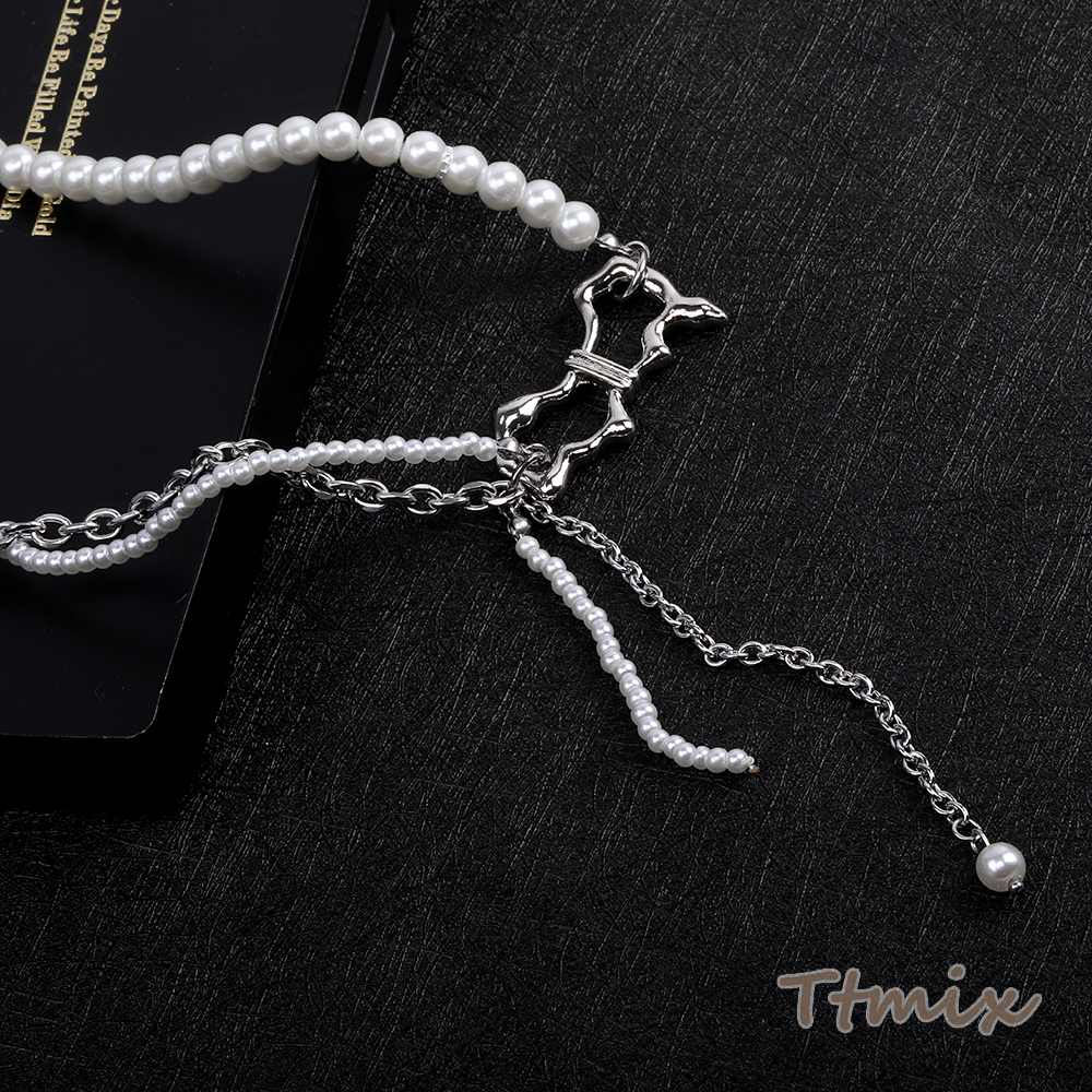 メタルネックレス パールチェーン付き 42cm ロジウム(1連)